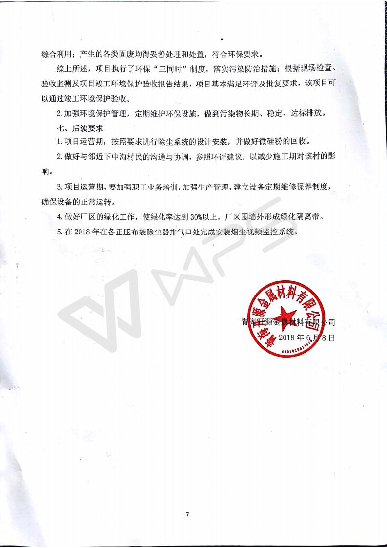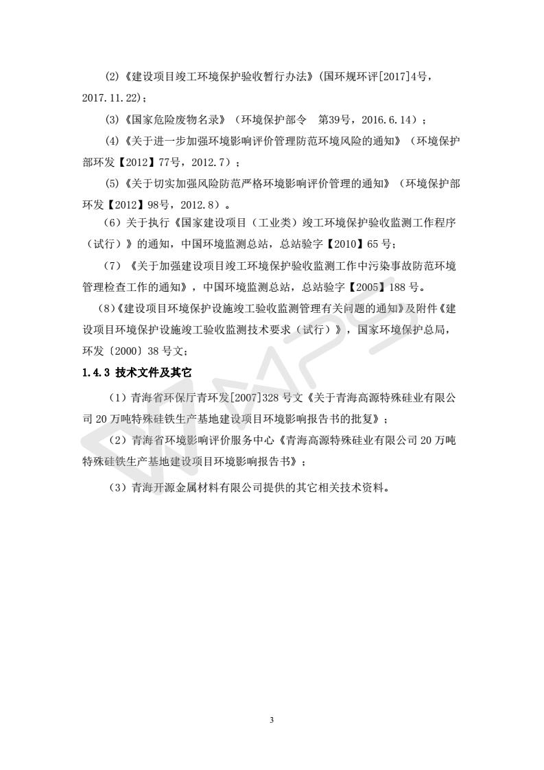 青海開源金屬材料有限公司20萬噸特殊硅鐵生產(chǎn)基地建設(shè)項目(一期工程)竣工環(huán)境保護驗收報告書會后修改20180521