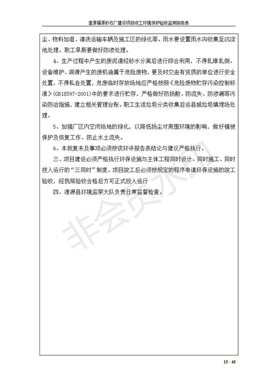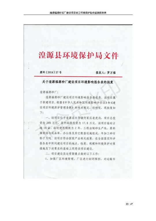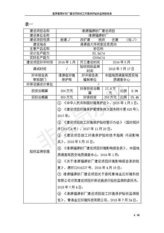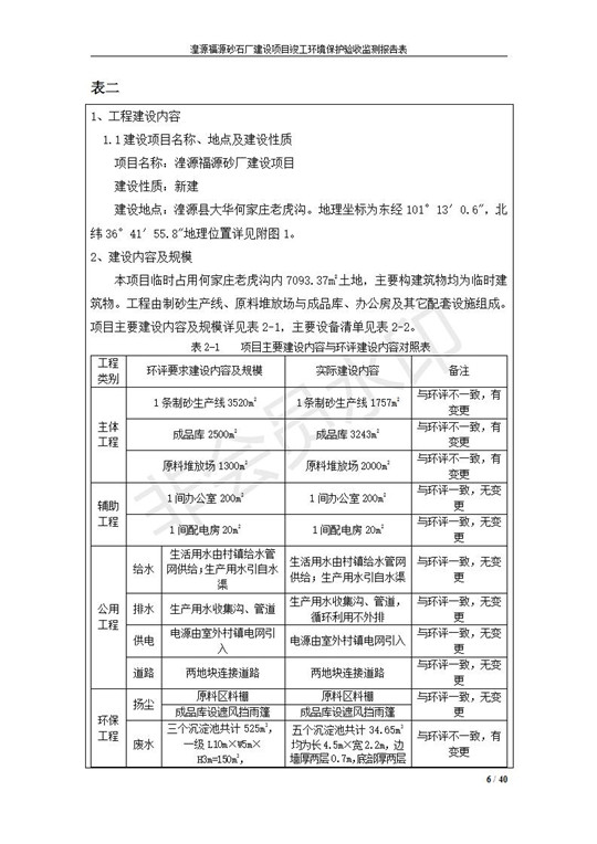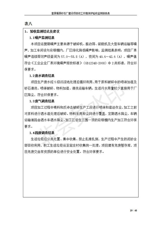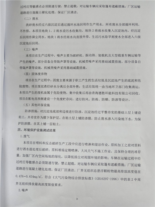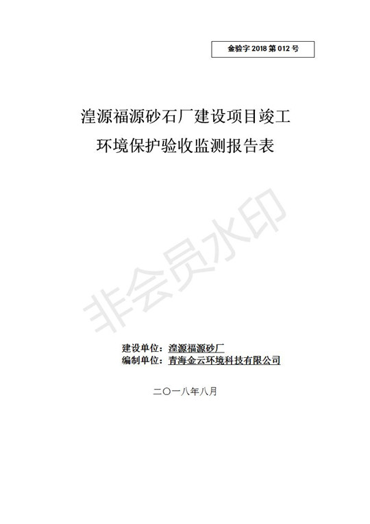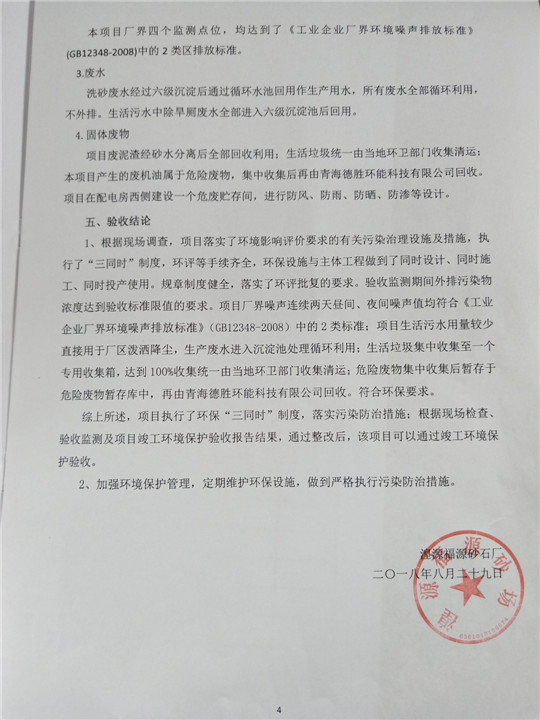 根據中華人民共和國國務院令第253號《建設項目環(huán)境保護管理條例》(中華人民共和國國務院令第682號《國務院關于修改〈建設項目環(huán)境保護管理條例〉的決定》和《建設項目竣工環(huán)境保護驗收暫行辦法》,嚴格依照有關法律法規(guī),建設項目環(huán)境保護設施驗收技術規(guī)范,本項目環(huán)評報告表和環(huán)保審批部門審批意見以及企業(yè)自行驗收相關要求等對本項目進行驗收,本項目符合環(huán)保驗收條件,可以通過環(huán)保驗收。 湟源福砂廠建設項目竣工環(huán)境保護驗收意見