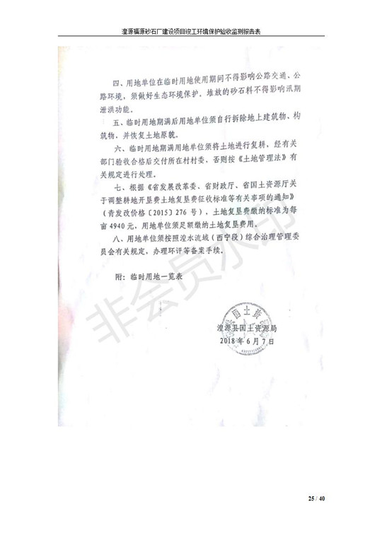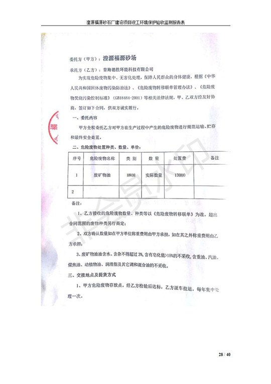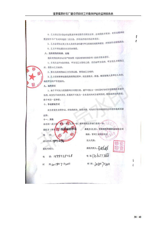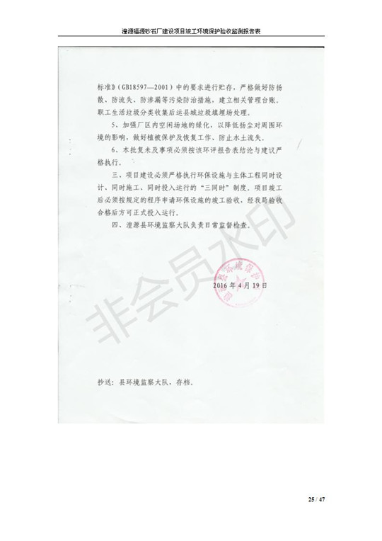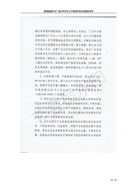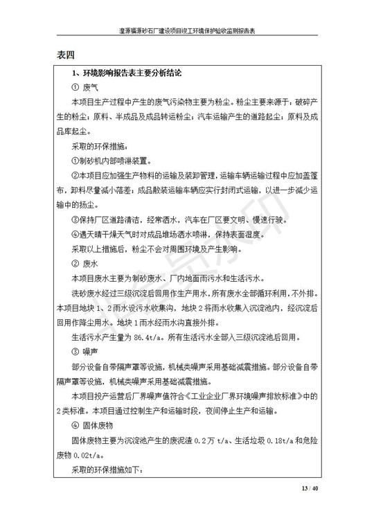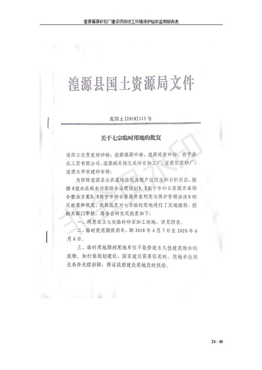 根據中華人民共和國國務院令第253號《建設項目環(huán)境保護管理條例》(中華人民共和國國務院令第682號《國務院關于修改〈建設項目環(huán)境保護管理條例〉的決定》和《建設項目竣工環(huán)境保護驗收暫行辦法》,嚴格依照有關法律法規(guī),建設項目環(huán)境保護設施驗收技術規(guī)范,本項目環(huán)評報告表和環(huán)保審批部門審批意見以及企業(yè)自行驗收相關要求等對本項目進行驗收,本項目符合環(huán)保驗收條件,可以通過環(huán)保驗收。 湟源福砂廠建設項目竣工環(huán)境保護驗收意見