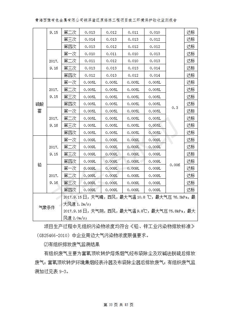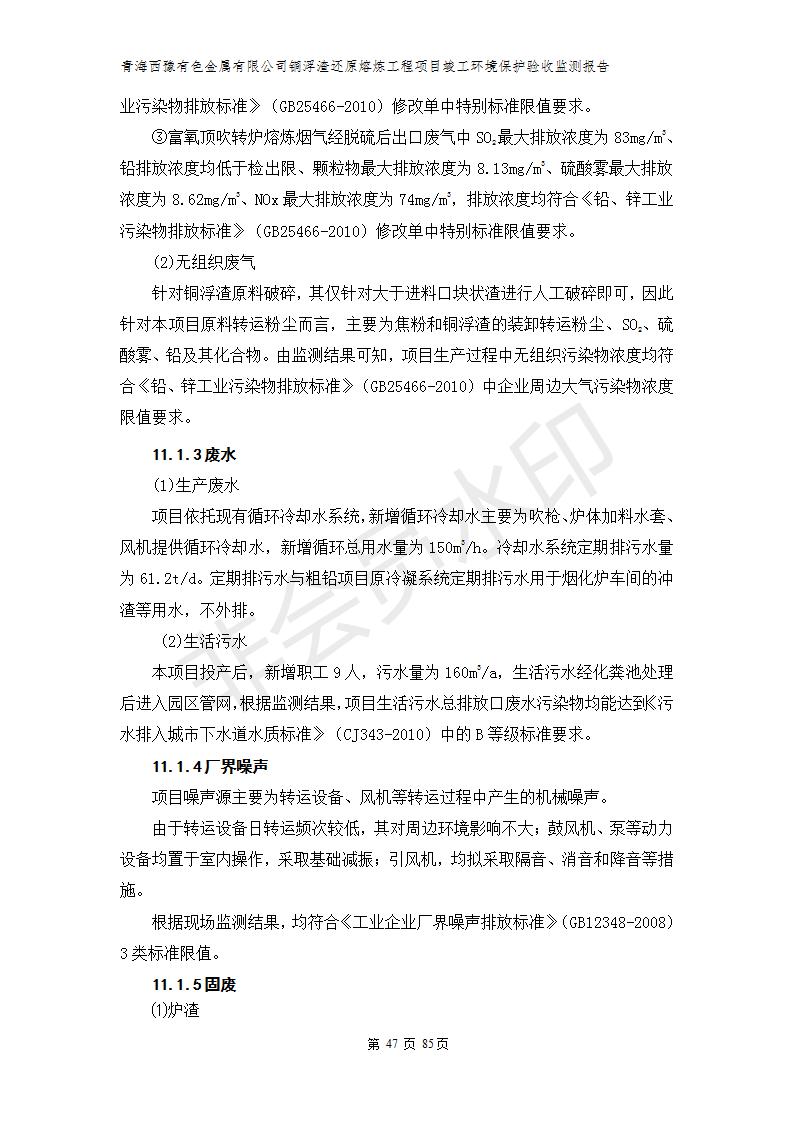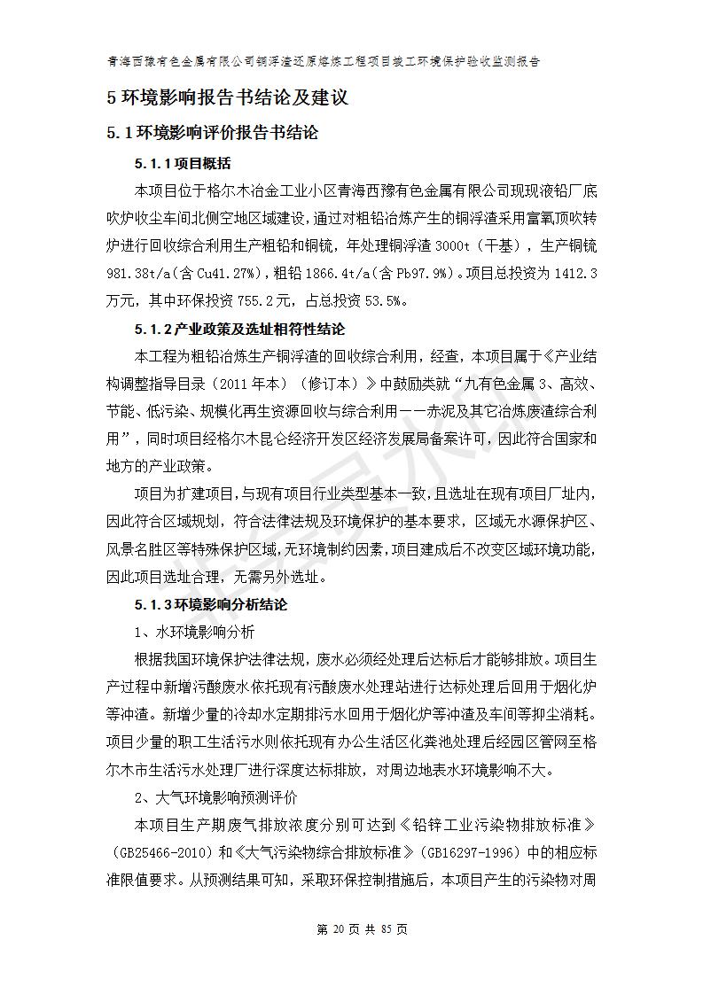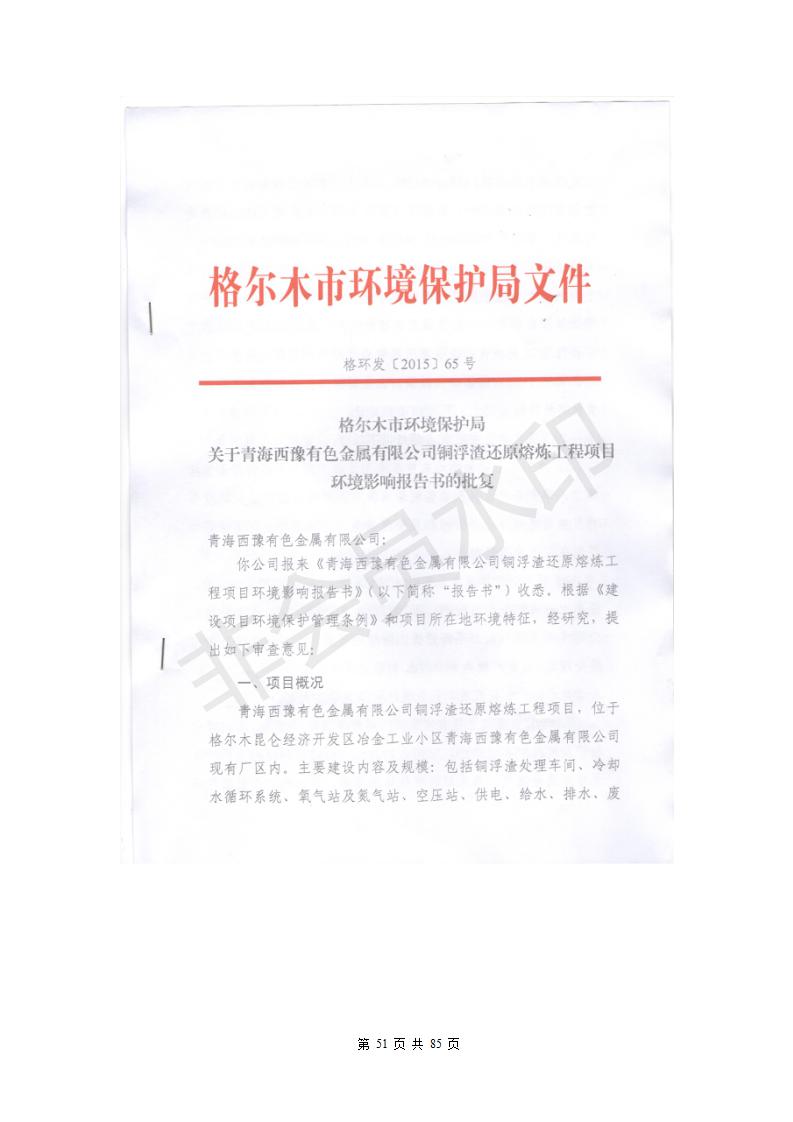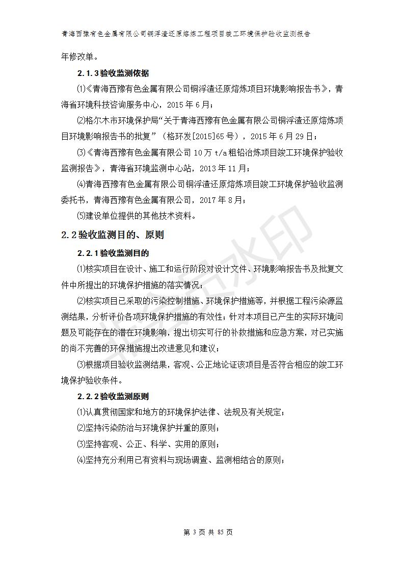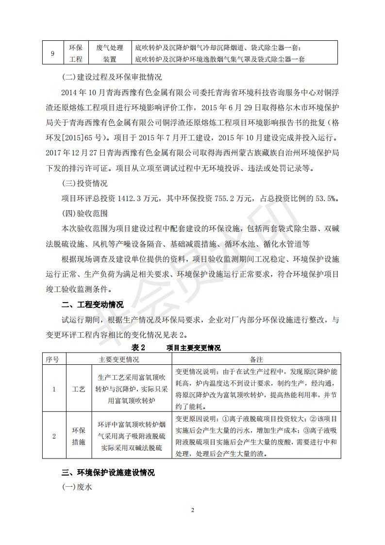 青海西豫有色金屬有限公司銅浮渣還原熔煉工程項目竣工環(huán)境保護驗收監(jiān)測報告公示發(fā)布日期:(2018-11-23) 點擊次數(shù):2629 |