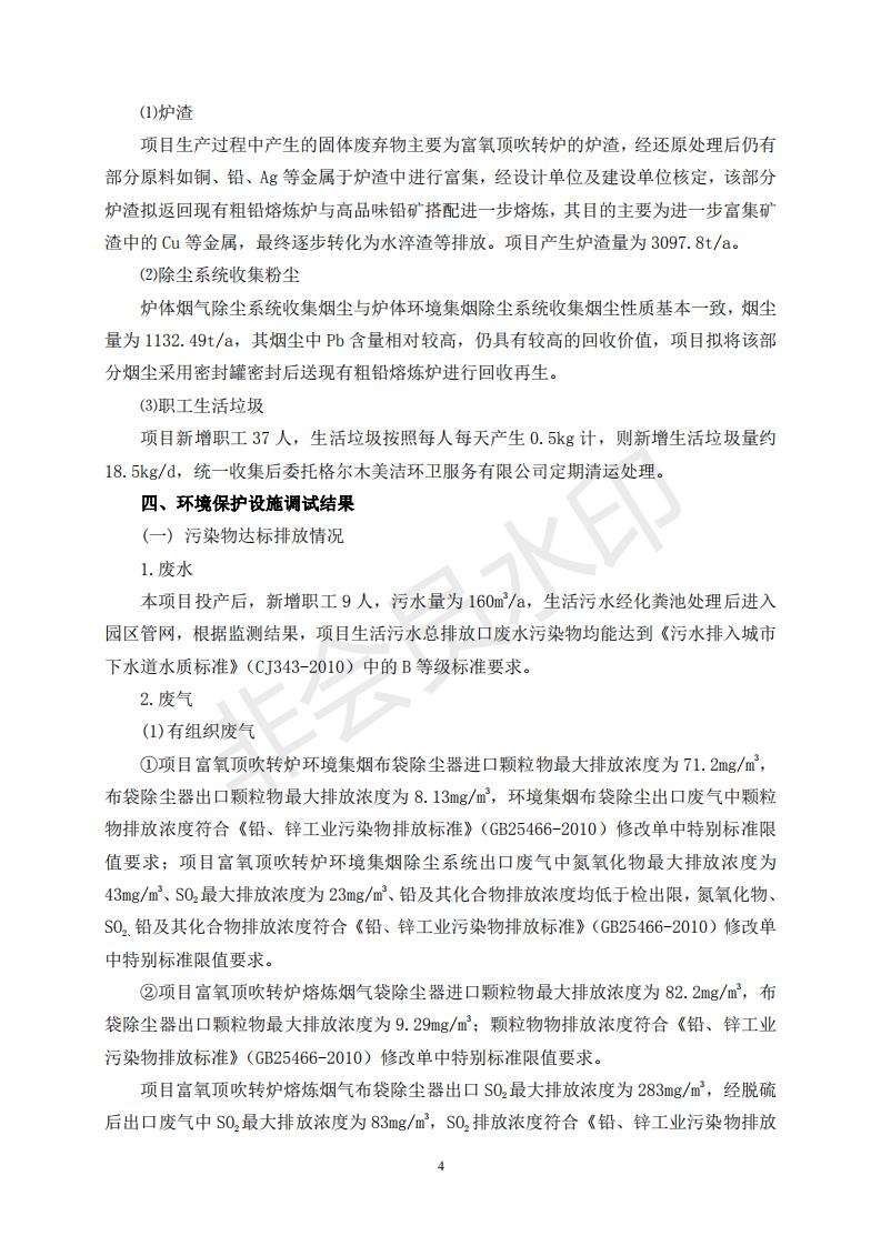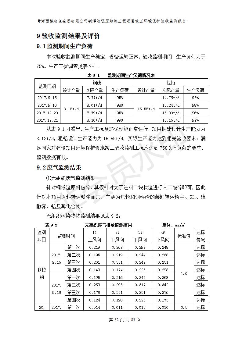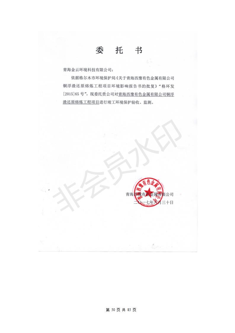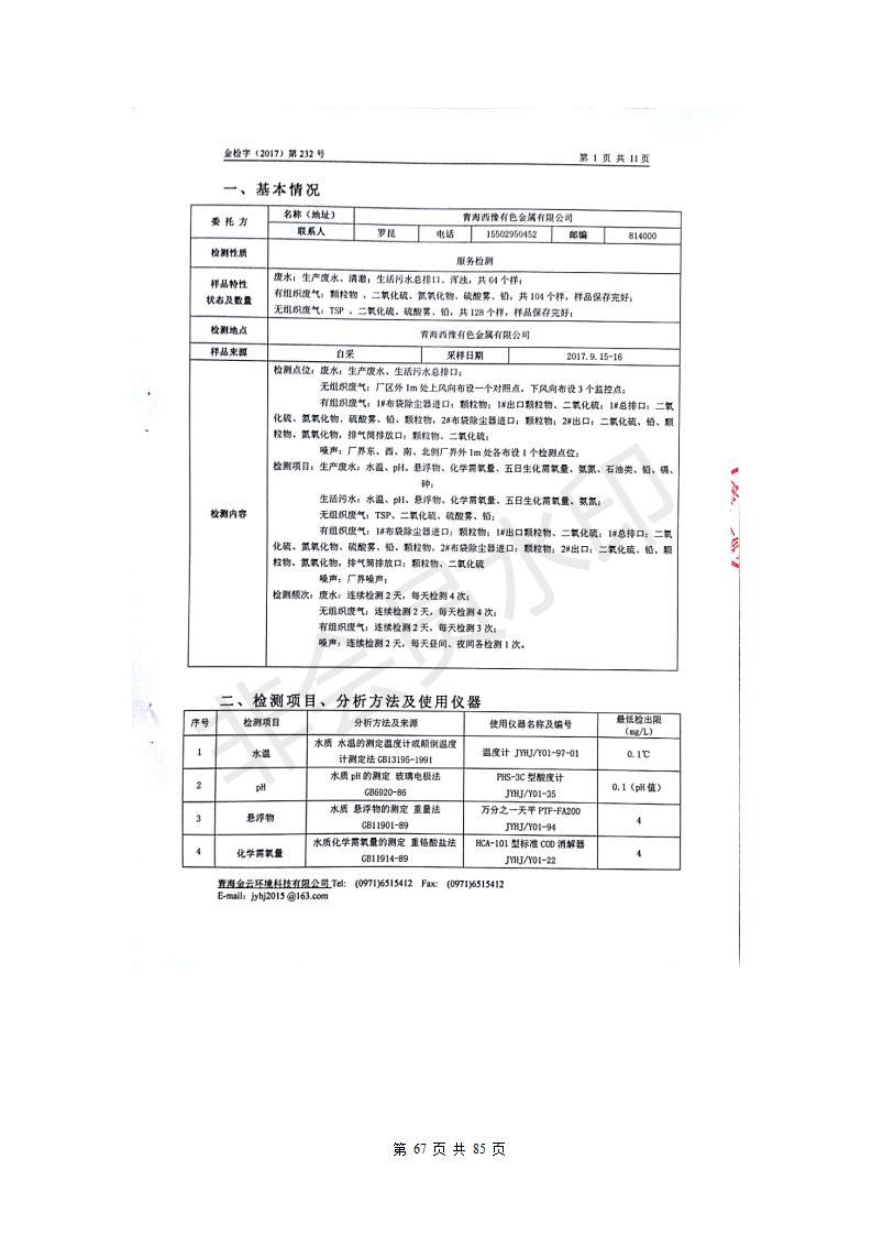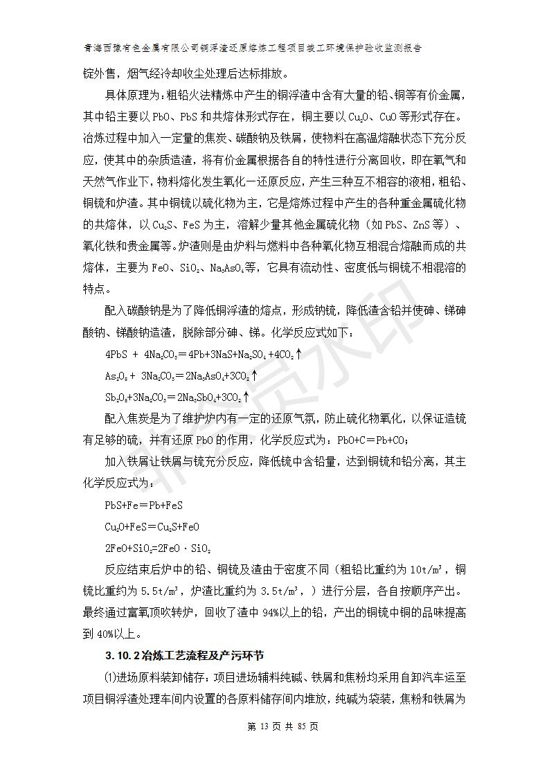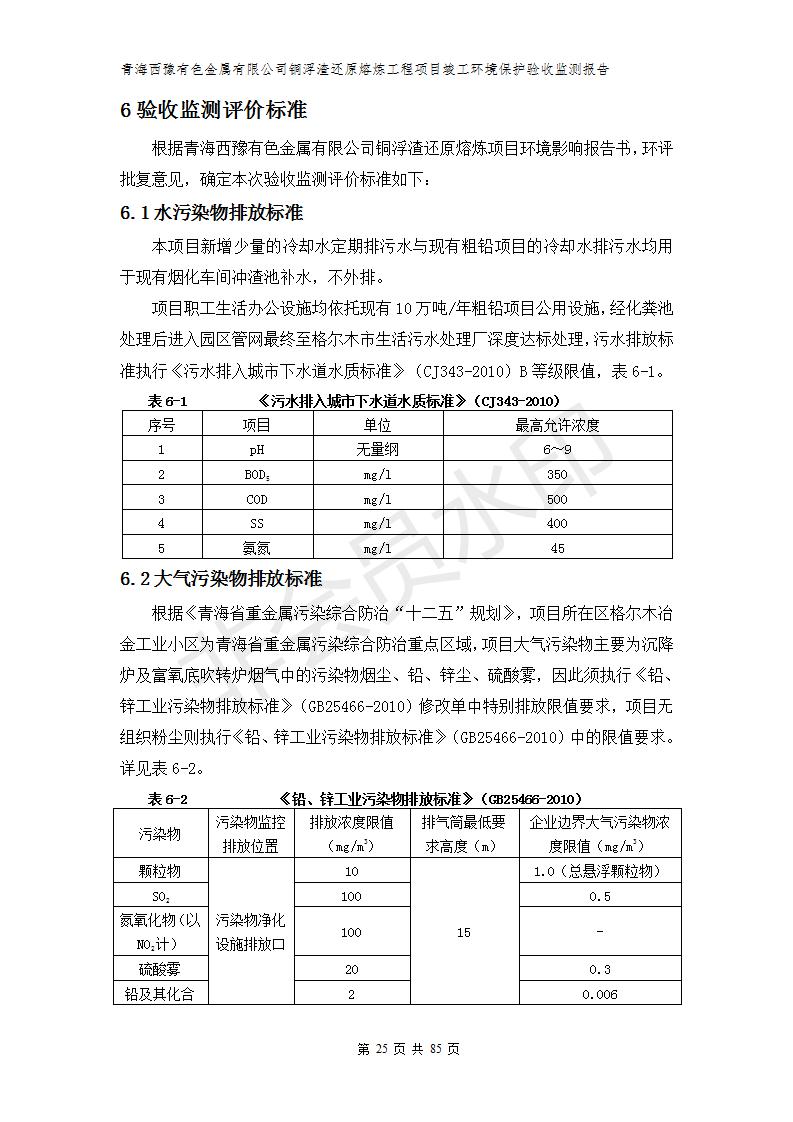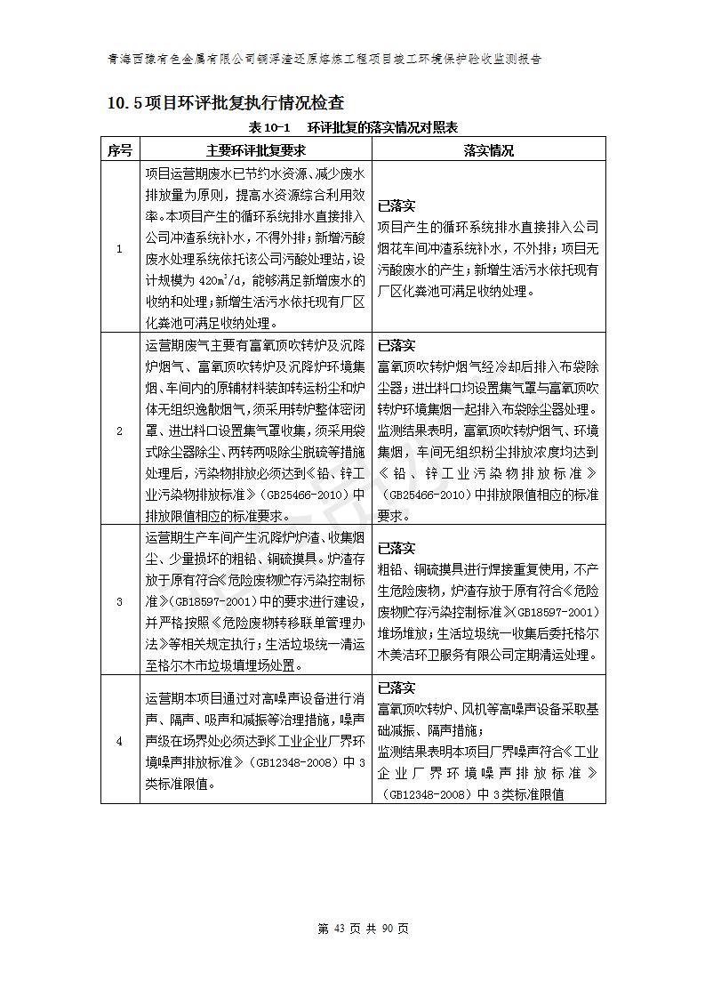 青海西豫有色金屬有限公司銅浮渣還原熔煉工程項目竣工環(huán)境保護驗收監(jiān)測報告公示發(fā)布日期:(2018-11-23) 點擊次數(shù):2629 |