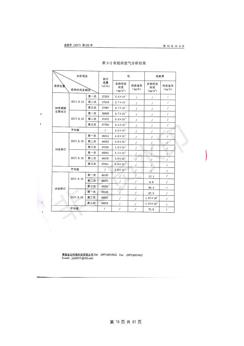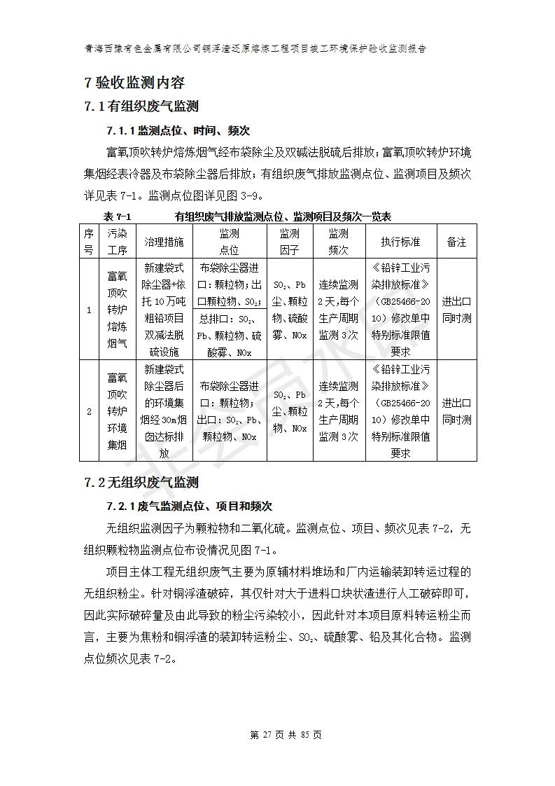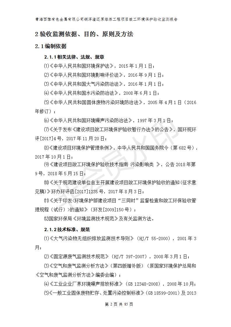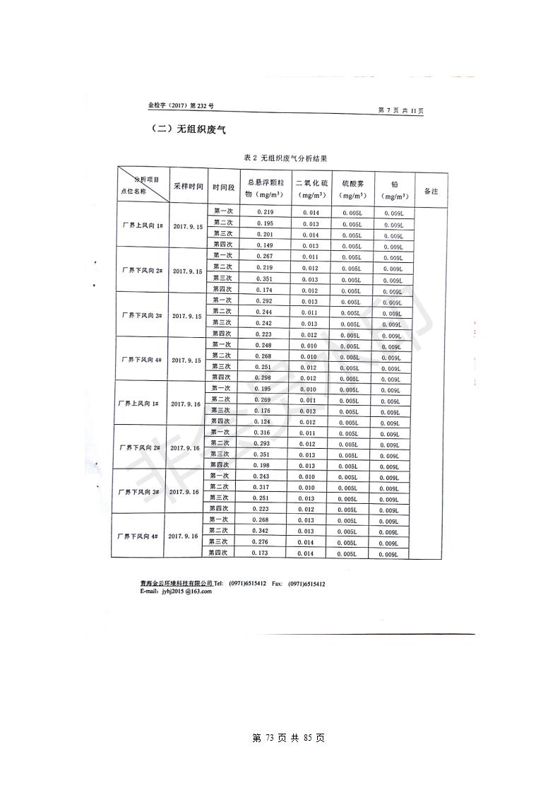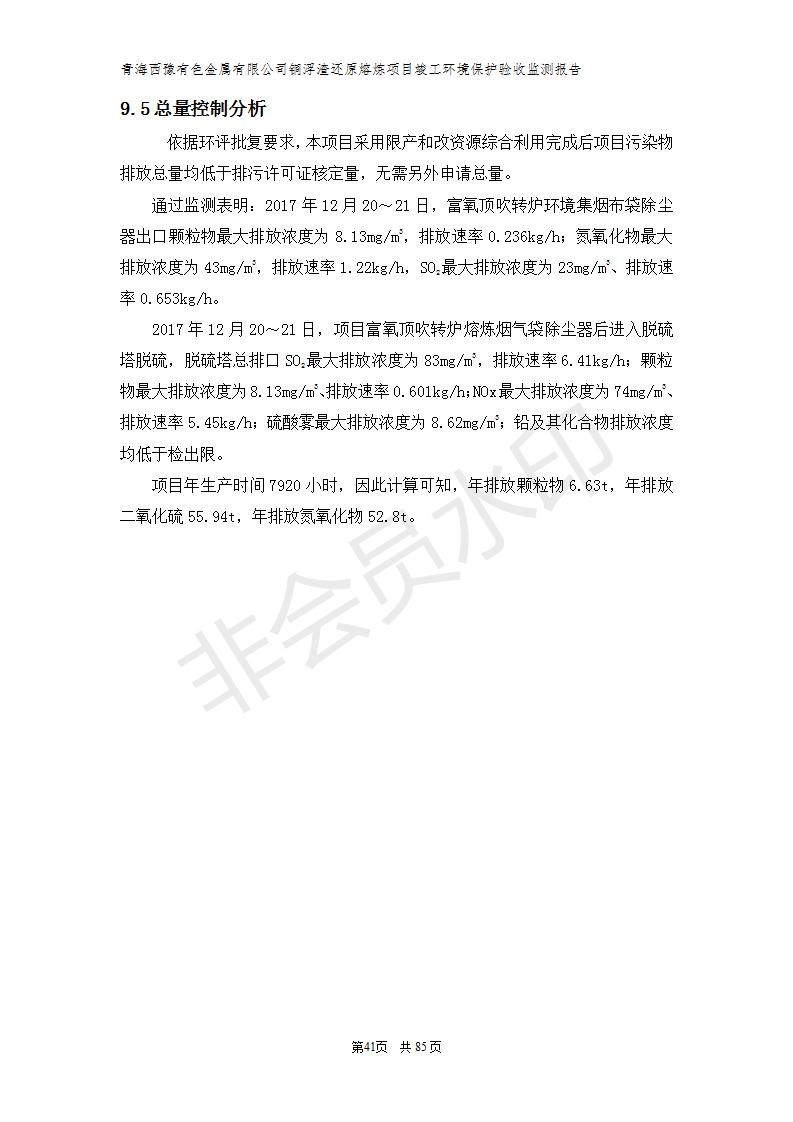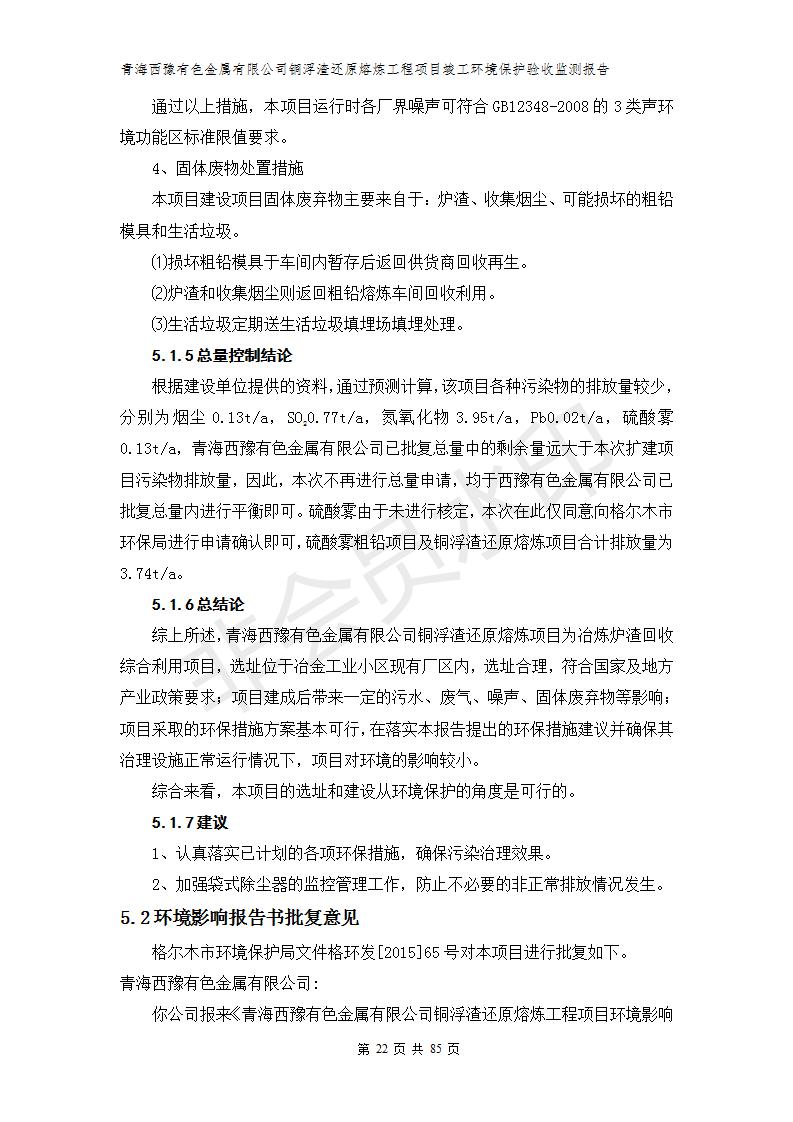 青海西豫有色金屬有限公司銅浮渣還原熔煉工程項目竣工環(huán)境保護驗收監(jiān)測報告公示發(fā)布日期:(2018-11-23) 點擊次數(shù):2629 |