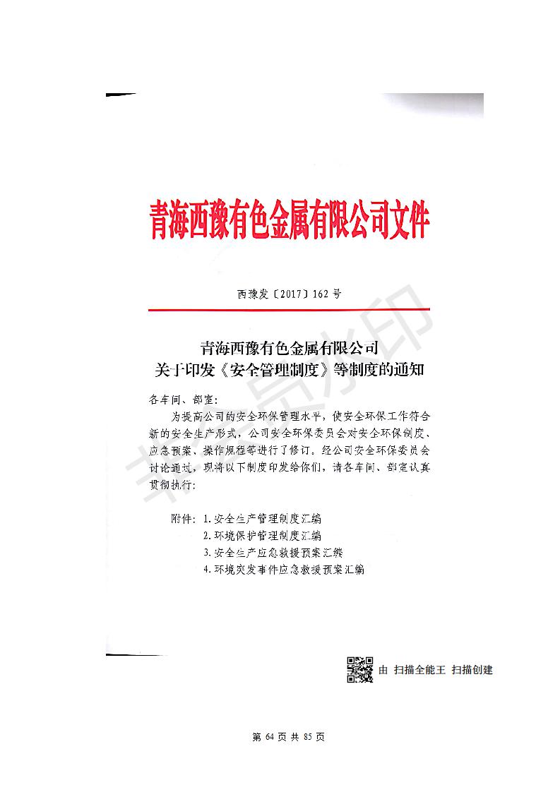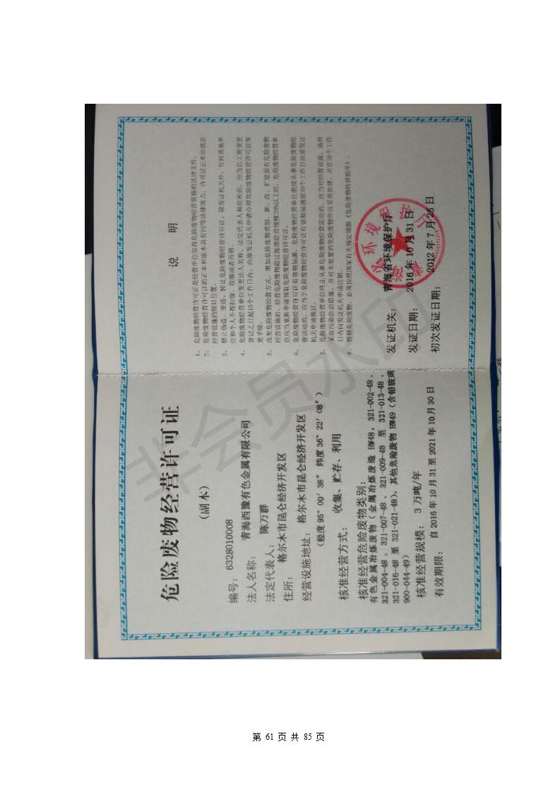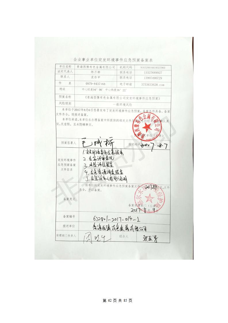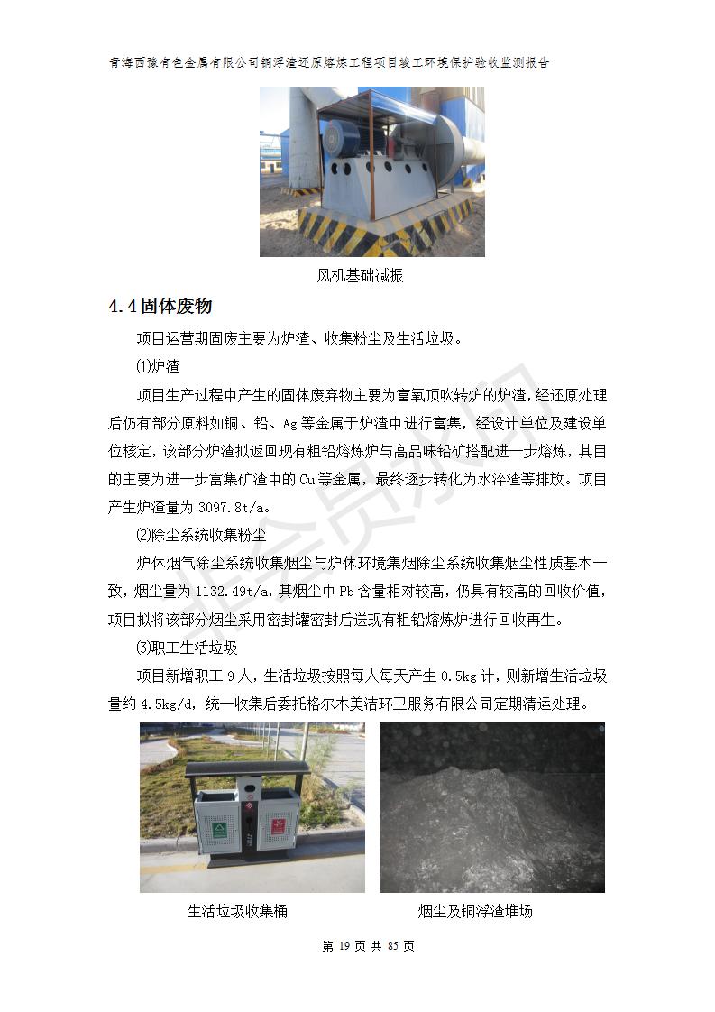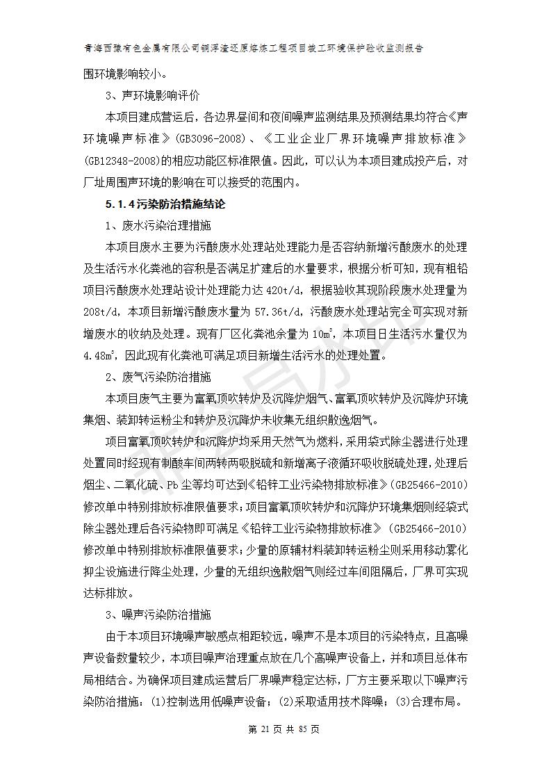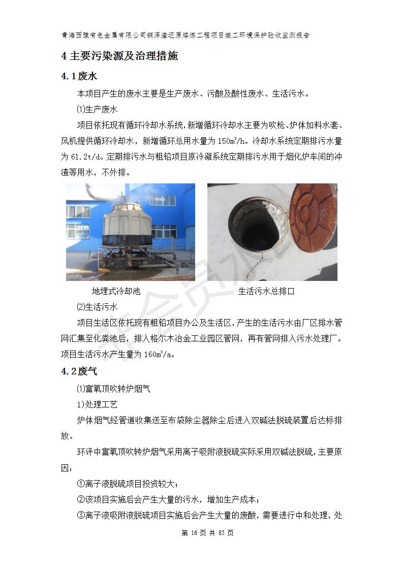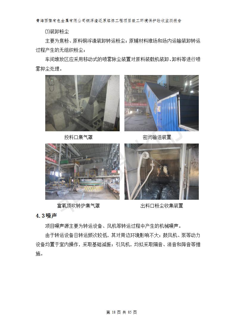青海西豫有色金屬有限公司銅浮渣還原熔煉工程項目竣工環(huán)境保護驗收監(jiān)測報告公示發(fā)布日期:(2018-11-23) 點擊次數(shù):2629 |