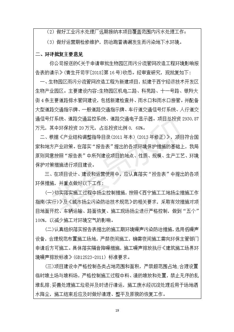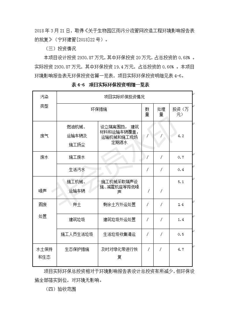 生物園區(qū)雨污分流管網(wǎng)改造工程竣工環(huán)境保護(hù)驗(yàn)收調(diào)查表 公示發(fā)布日期:(2018-12-21) 點(diǎn)擊次數(shù):2789 |