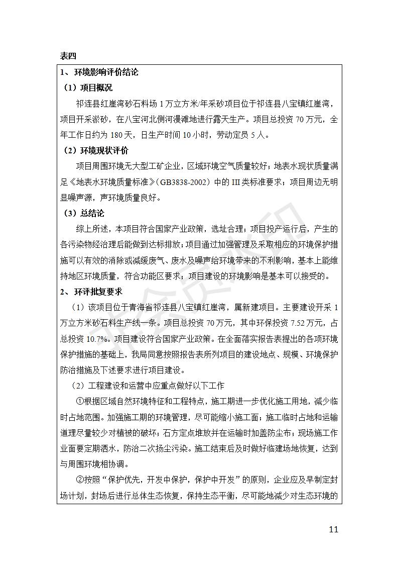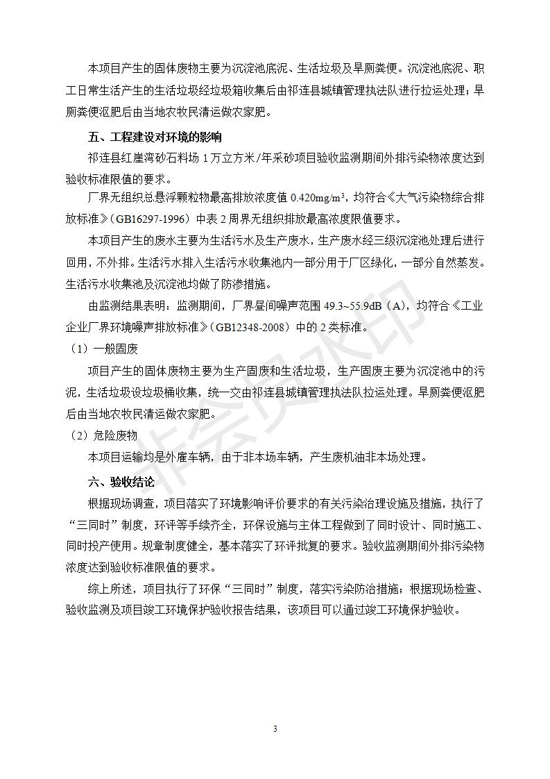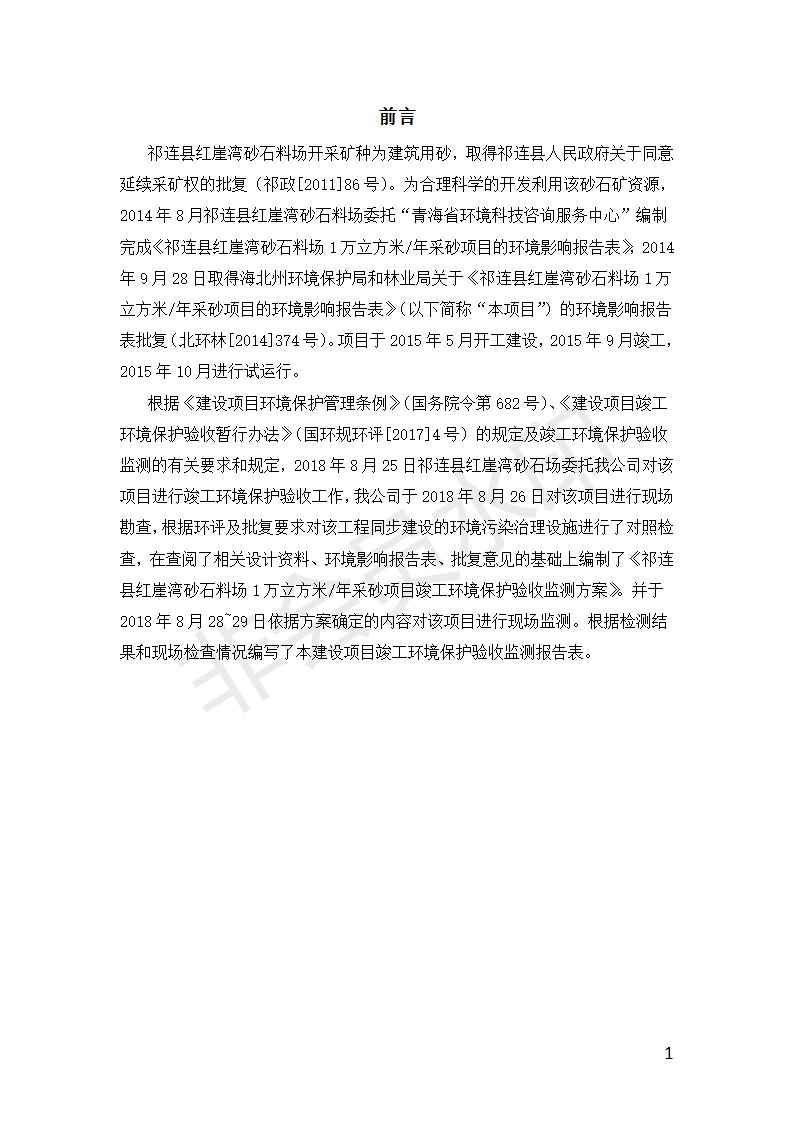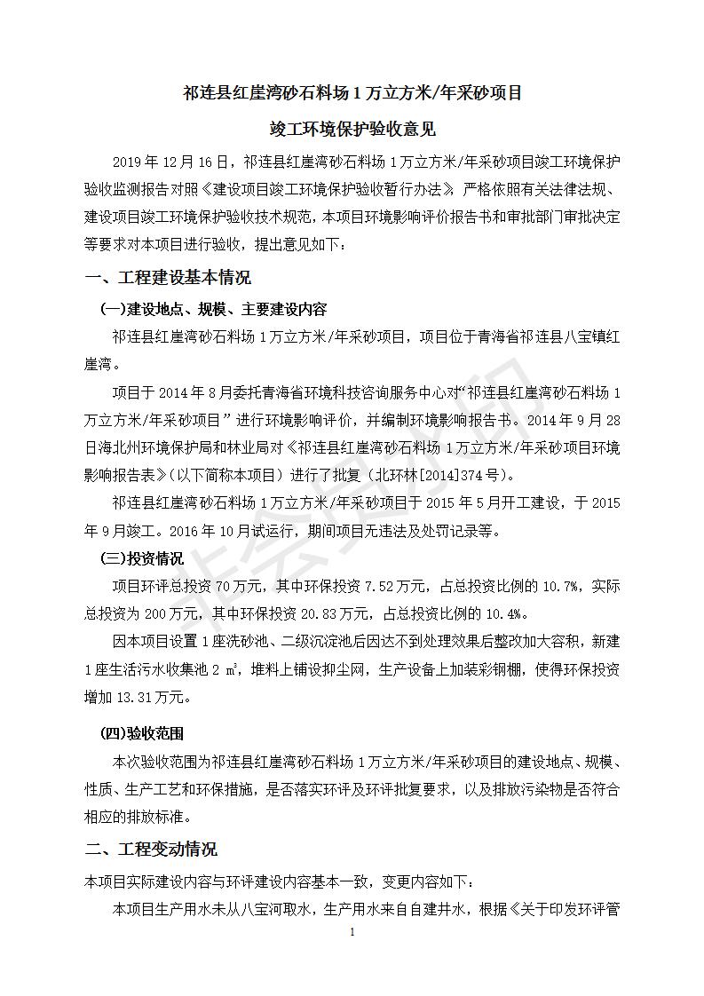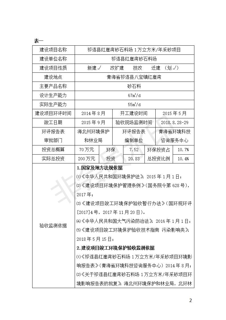 祁連縣紅崖灣砂石料場(chǎng)1萬立方米/年采砂項(xiàng)目竣工環(huán)境保護(hù)驗(yàn)收監(jiān)測(cè)報(bào)告表公示