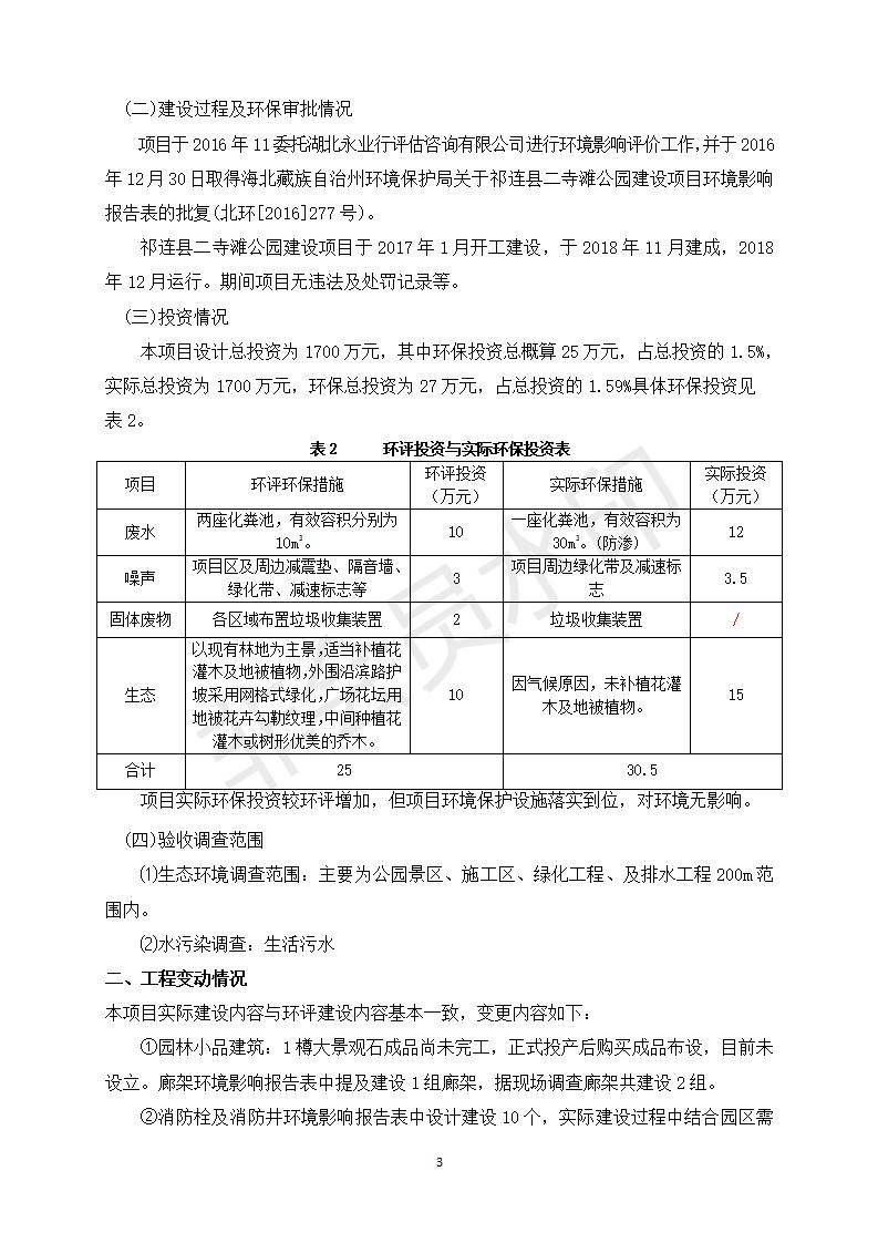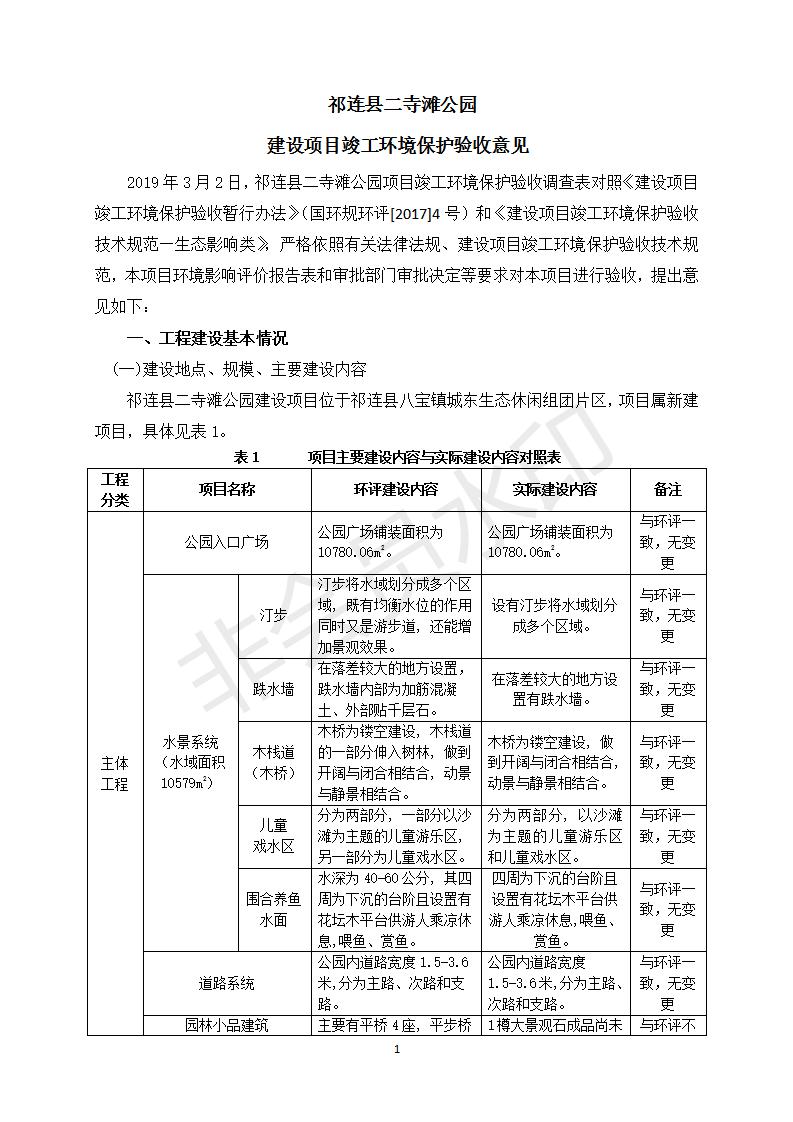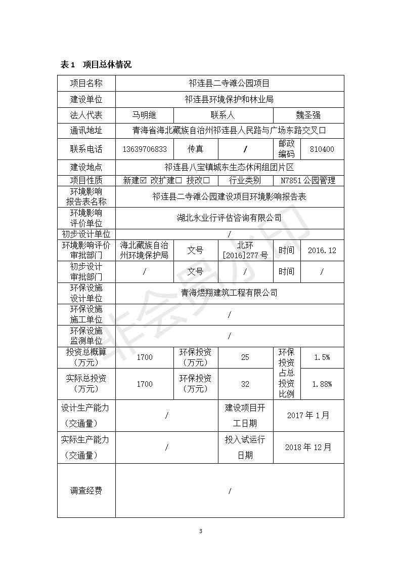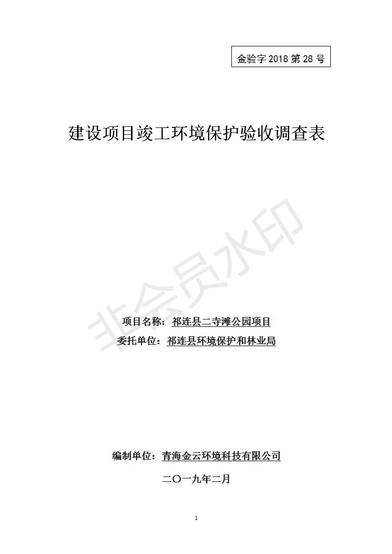祁連縣二寺灘公園項(xiàng)目竣工環(huán)境保護(hù)驗(yàn)收調(diào)查表公示