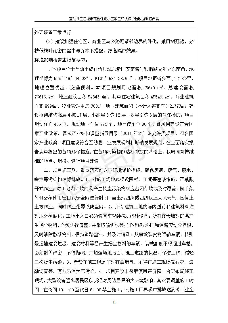 根據(jù)中華人民共和國國務院令第682號《國務院關于修改〈建設項目環(huán)境保護管理條例〉的決定》和《建設項目竣工環(huán)境保護驗收暫行辦法》(國務院令682號),互助縣三江城市花園住宅小區(qū)(包括竣工環(huán)境保護驗收監(jiān)測報告表和驗收意見)公示如下。 一、項目名稱: 互助縣三江城市花園住宅小區(qū)竣工環(huán)境保護驗收監(jiān)測報告表 二、地點:青海省海東市互助土族自治縣威遠鎮(zhèn)安定路與和諧路交匯處東南角 三、建設單位:青海三兄房地產(chǎn)開發(fā)有限公司 四、建設內(nèi)容:項目規(guī)劃用地面積26670.0m2,實際占地面積26670.0m2,項目占地面積未發(fā)生變化,規(guī)劃設計建筑總面積76616.4m2,其中商業(yè)建筑面積8994m2。實際建筑總面積58639.64m2,其中商業(yè)建筑面積9894.27m2。 五、聯(lián)系人:張工 六、聯(lián)系電 話:0971-6515411 七、公示時間:二〇一九年六月五日至二〇一九年七月三日 公示期間,對上述公示內(nèi)容如有異議,請以書面形式反饋,個人須署真實姓名,單位須加蓋公章。