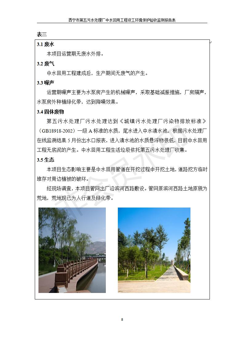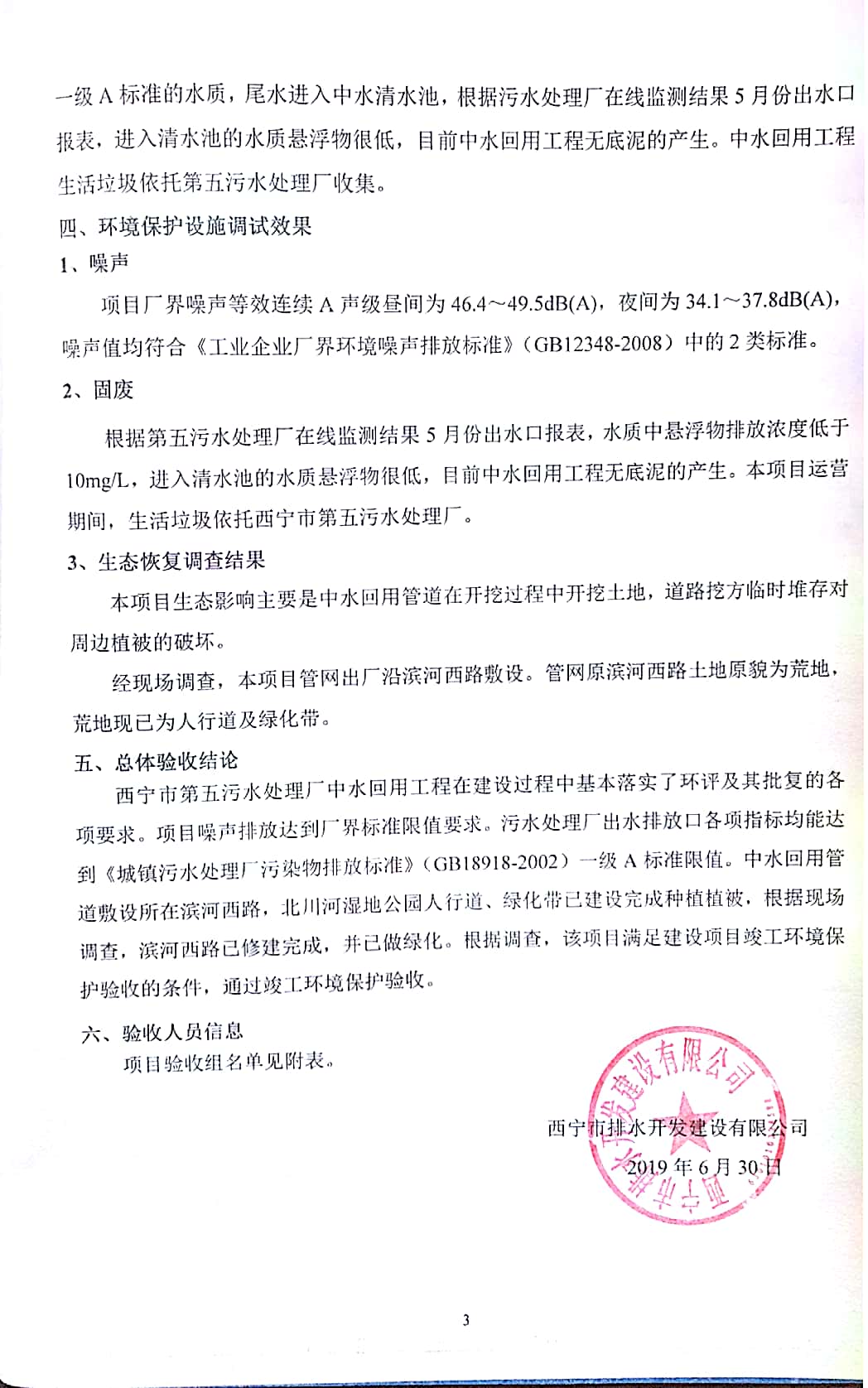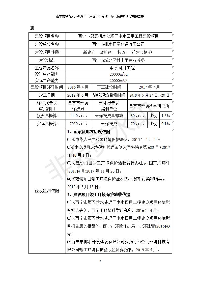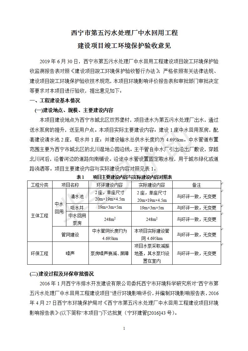 根據(jù)中華人民共和國國務(wù)院令第682號《國務(wù)院關(guān)于修改〈建設(shè)項(xiàng)目環(huán)境保護(hù)管理?xiàng)l例〉的決定》和《建設(shè)項(xiàng)目竣工環(huán)境保護(hù)驗(yàn)收暫行辦法》(國務(wù)院令682號),西寧市第五污水處理廠中水回用工程建設(shè)項(xiàng)目(包括竣工環(huán)境保護(hù)驗(yàn)收監(jiān)測報(bào)告表和驗(yàn)收意見)公示如下。 一、項(xiàng)目名稱:西寧市第五污水處理廠中水回用工程建設(shè)項(xiàng)目 二、地點(diǎn):西寧市城北區(qū)廿十里鋪雙蘇堡 三、建設(shè)單位:西寧市排水開發(fā)建設(shè)有限公司