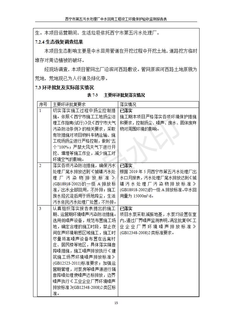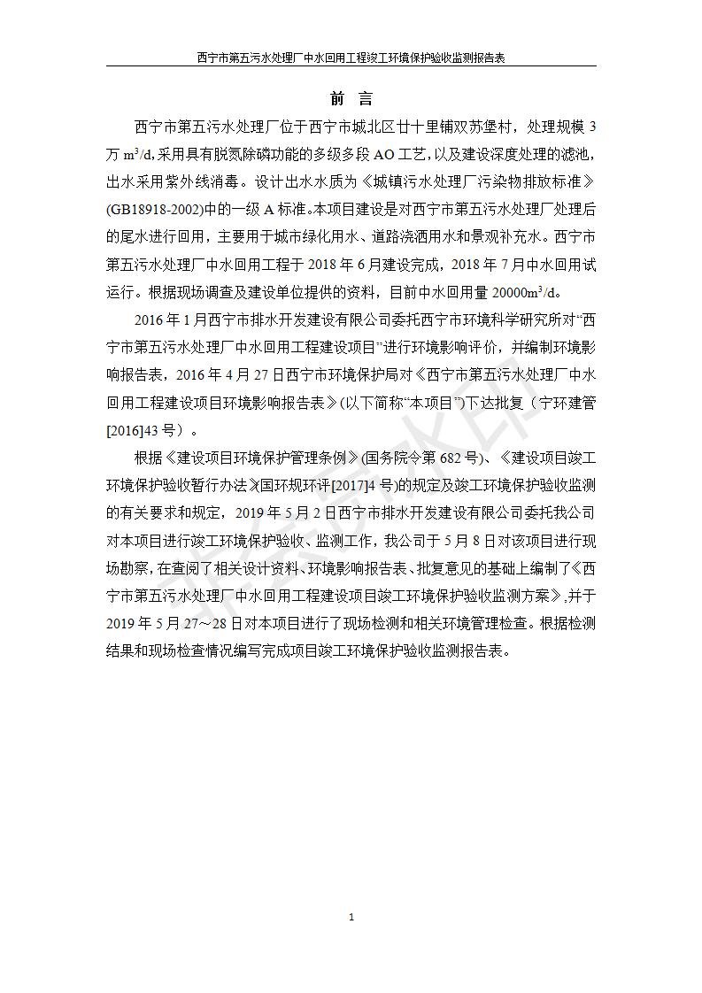 西寧市第五污水處理廠中水回用工程建設(shè)項(xiàng)目竣工環(huán)境保護(hù)驗(yàn)收監(jiān)測報(bào)告表公示發(fā)布日期:(2019-7-10) 點(diǎn)擊次數(shù):2372 |