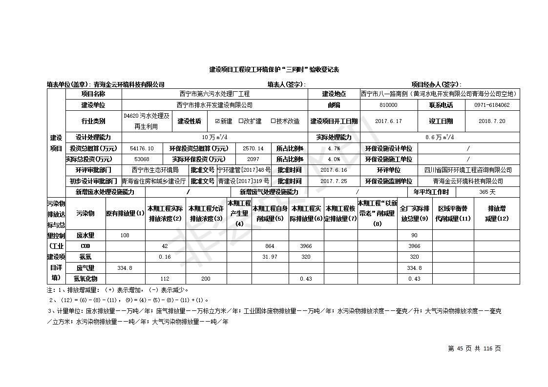 西寧市第六污水處理廠工程竣工環(huán)境保護(hù)驗(yàn)收公示發(fā)布日期:(2019-7-11) 點(diǎn)擊次數(shù):2734 |