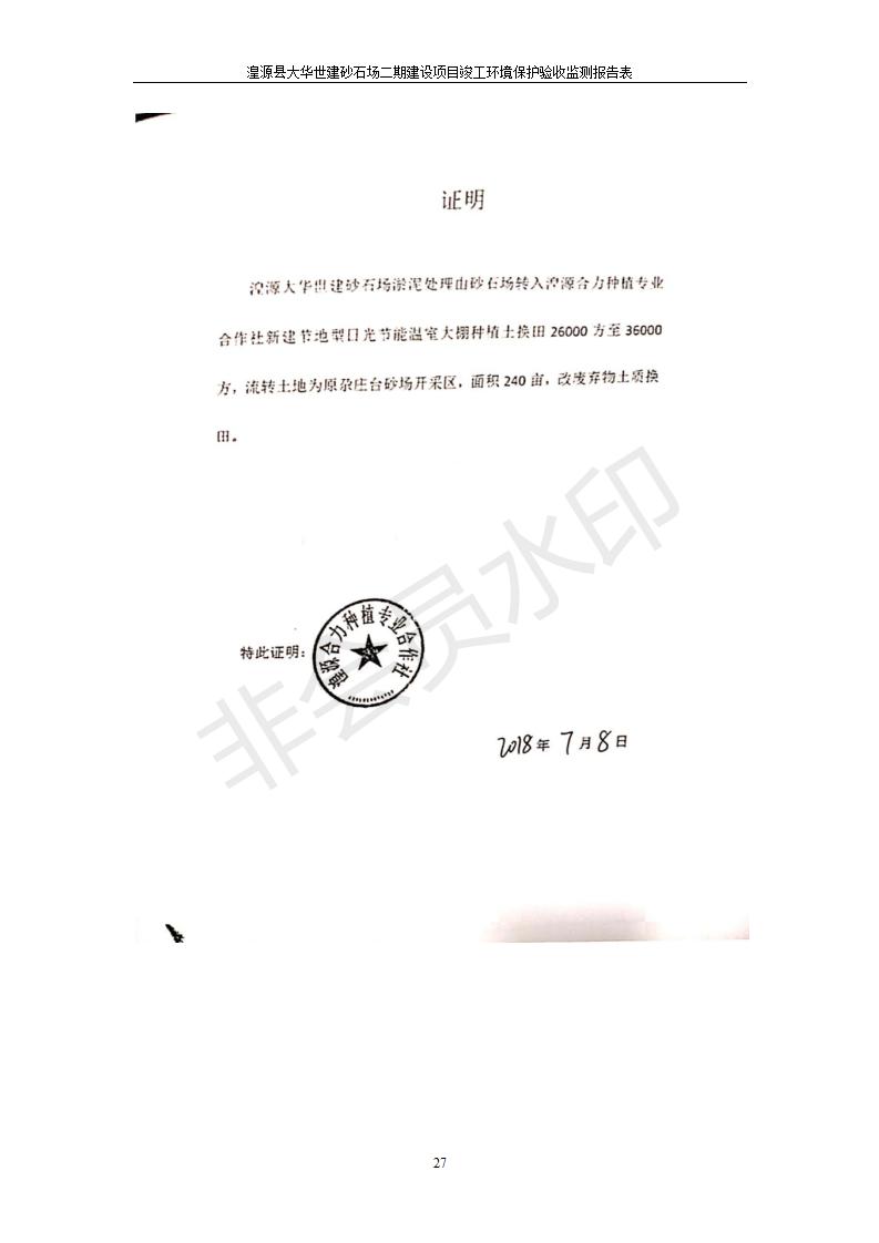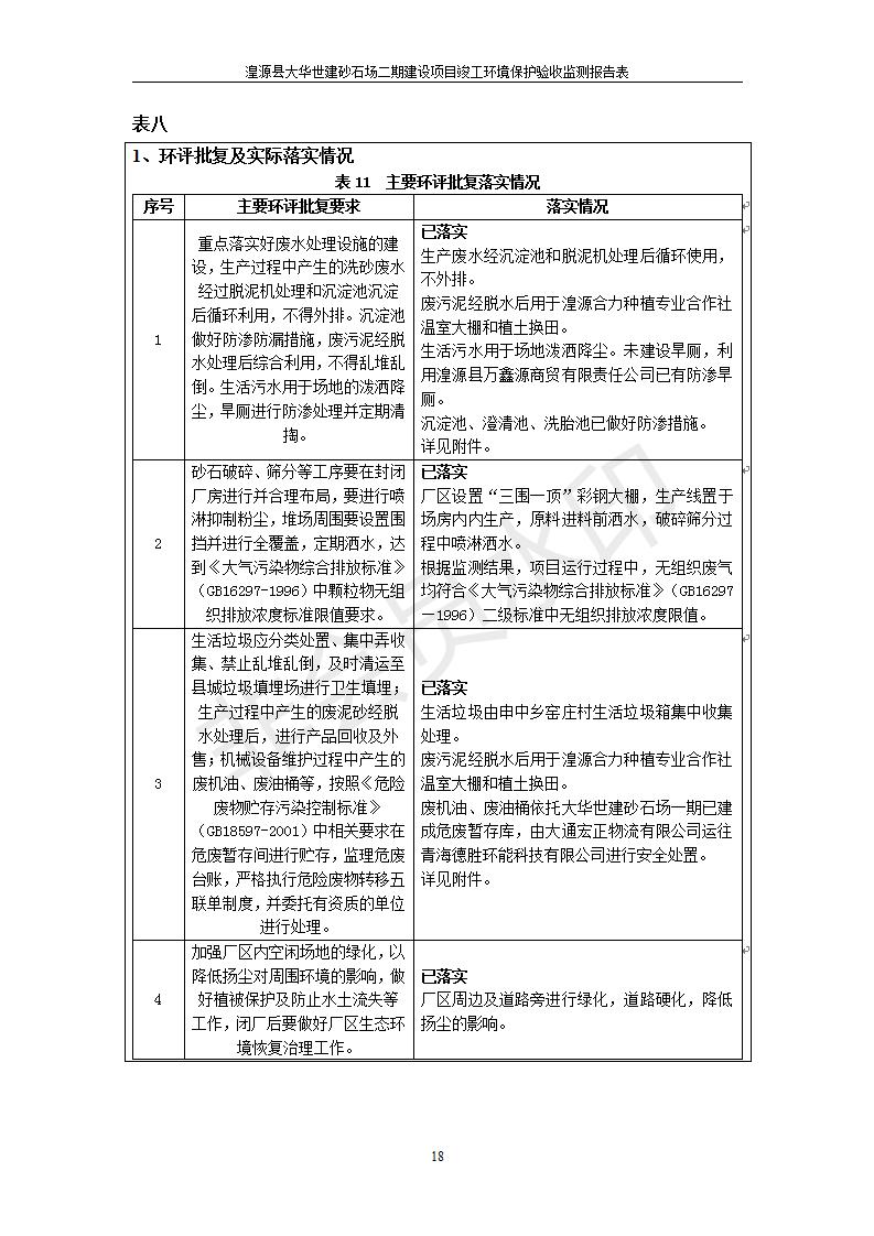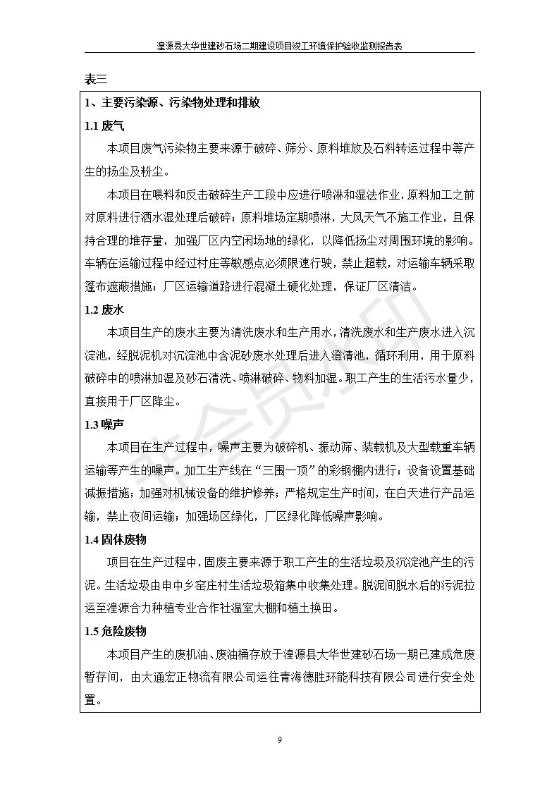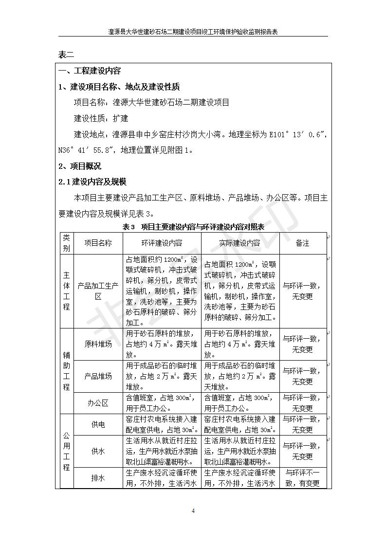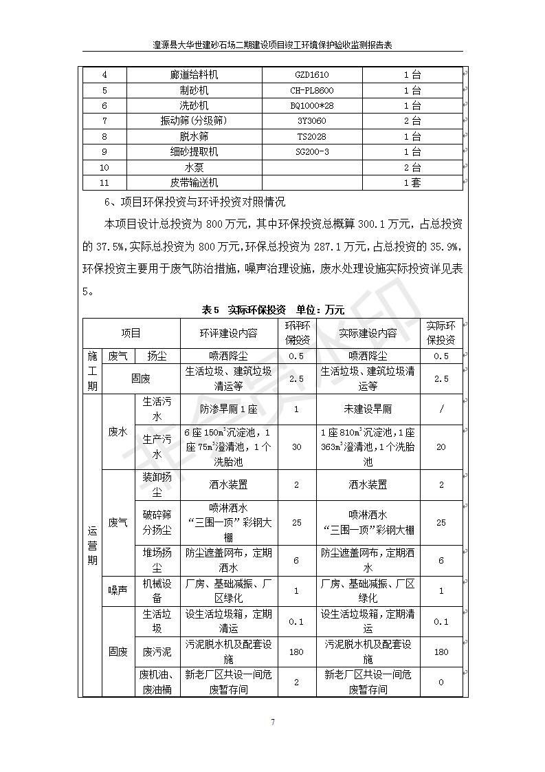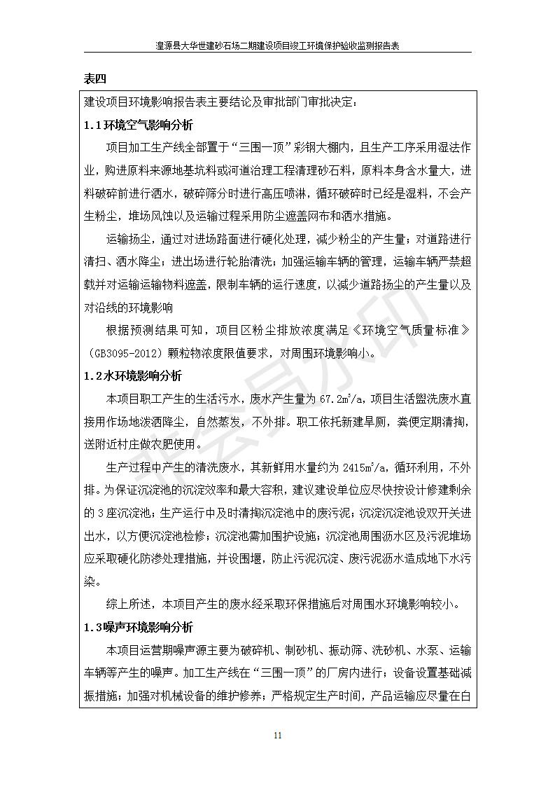 根據(jù)中華人民共和國國務(wù)院令第682號《國務(wù)院關(guān)于修改〈建設(shè)項目環(huán)境保護(hù)管理條例〉的決定》和《建設(shè)項目竣工環(huán)境保護(hù)驗收暫行辦法》(國務(wù)院令682號),湟源大華世建砂石場湟源縣大華世建砂石場二期建設(shè)項目(包括竣工環(huán)境保護(hù)驗收監(jiān)測報告表和驗收意見)公示如下。 一、項目名稱:湟源縣大華世建砂石場二期建設(shè)項目 二、地點(diǎn):湟源縣申中鄉(xiāng)窯莊村沙崗大小灣 三、建設(shè)單位:湟源大華世建砂石場 四、建設(shè)內(nèi)容:項目主要建設(shè)砂石料產(chǎn)品加工生產(chǎn)區(qū)、原料堆場、產(chǎn)品堆場、辦公區(qū)等。五、聯(lián)系人:張工 六、聯(lián)系電 話:0971-6515411 七、公示時間:二〇一九年七月二十五日至二〇一九年八月二十一日公示期間,對上述公示內(nèi)容如有異議,請以書面形式反饋,個人須署真實姓名,單位須加蓋公章。