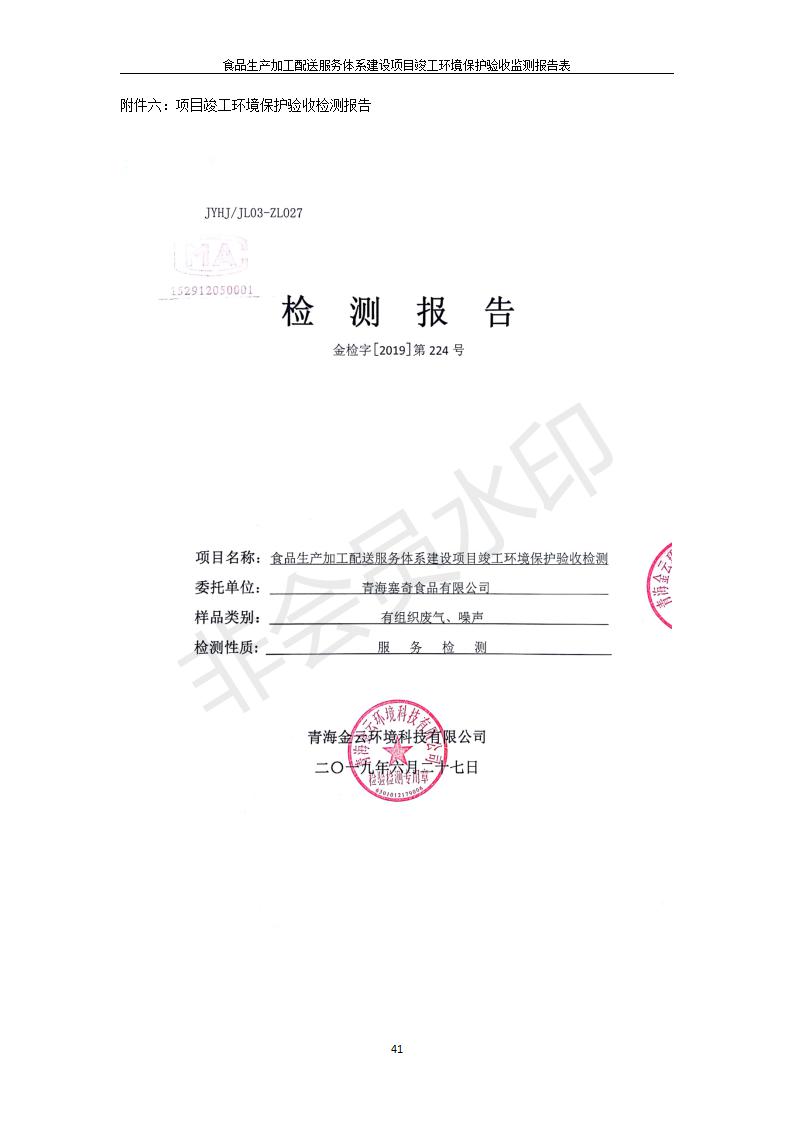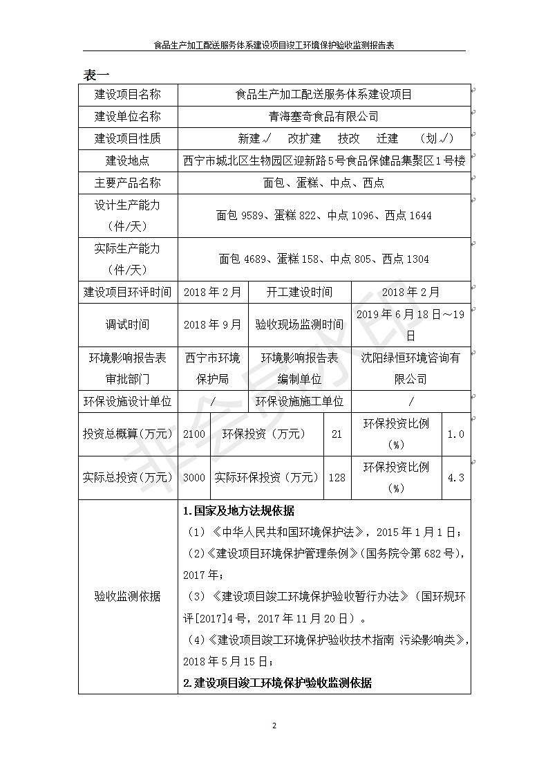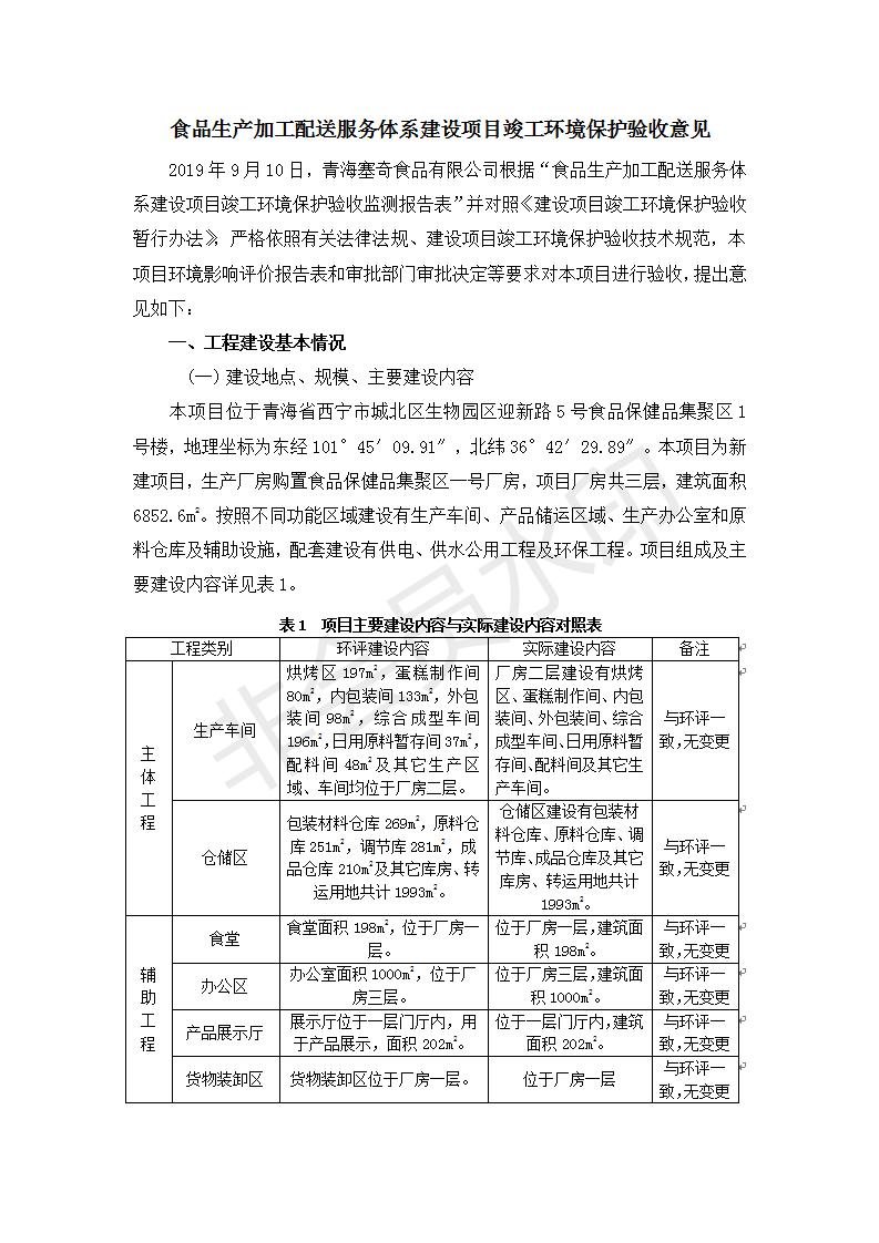 根據(jù)中華人民共和國國務院令第682號《國務院關于修改〈建設項目環(huán)境保護管理條例〉的決定》和《建設項目竣工環(huán)境保護驗收暫行辦法》(國務院令682號),食品生產(chǎn)加工配送服務體系建設項目(包括竣工環(huán)境保護驗收監(jiān)測報告表和驗收意見)公示如下。 一、項目名稱:食品生產(chǎn)加工配送服務體系建設項目 二、地點:西寧市城北區(qū)生物園區(qū)迎新路5號食品保健品集聚區(qū)1號樓 六、聯(lián)系電 話:0971-6515411 七、公示時間:二〇一九年九月二十日至二〇一九年十月二十二日 公示期間,對上述公示內(nèi)容如有異議,請以書面形式反饋,個人須署真實姓名,單位須加蓋公章。