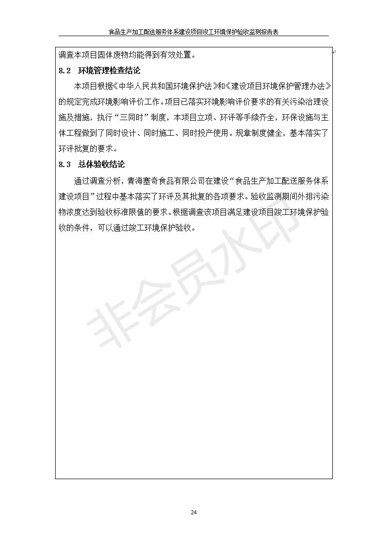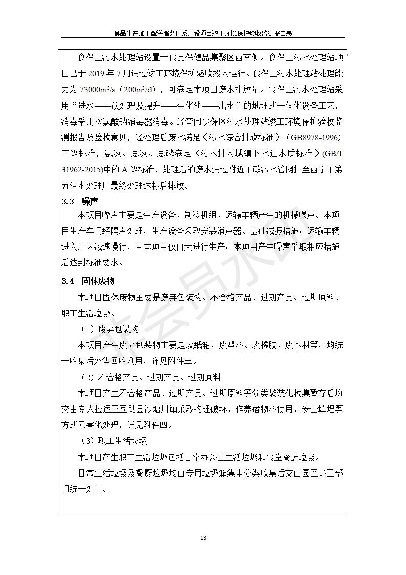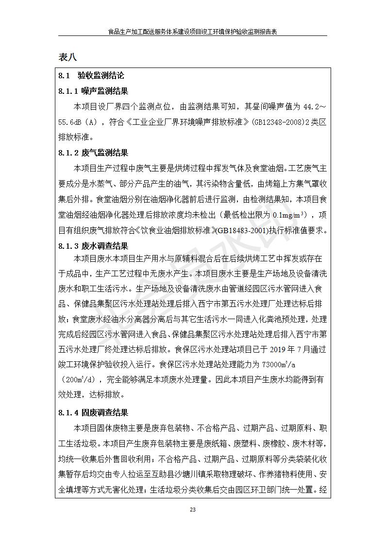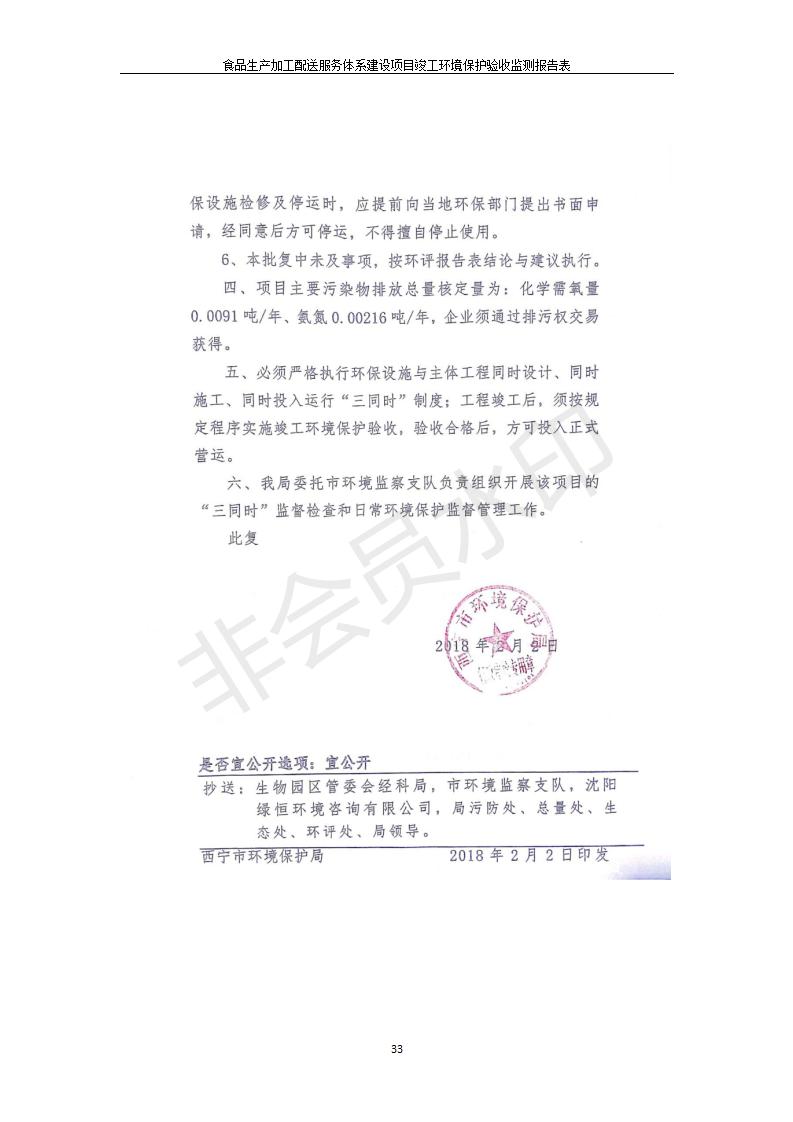根據(jù)中華人民共和國國務院令第682號《國務院關于修改〈建設項目環(huán)境保護管理條例〉的決定》和《建設項目竣工環(huán)境保護驗收暫行辦法》(國務院令682號),食品生產(chǎn)加工配送服務體系建設項目(包括竣工環(huán)境保護驗收監(jiān)測報告表和驗收意見)公示如下。 一、項目名稱:食品生產(chǎn)加工配送服務體系建設項目 二、地點:西寧市城北區(qū)生物園區(qū)迎新路5號食品保健品集聚區(qū)1號樓 六、聯(lián)系電 話:0971-6515411 七、公示時間:二〇一九年九月二十日至二〇一九年十月二十二日 公示期間,對上述公示內(nèi)容如有異議,請以書面形式反饋,個人須署真實姓名,單位須加蓋公章。