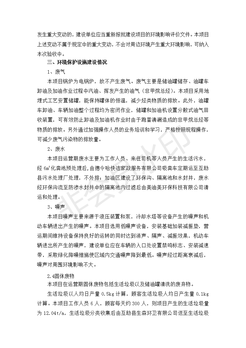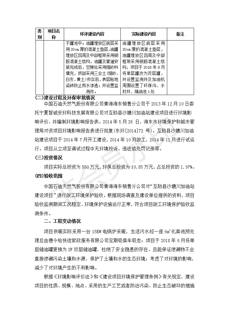 根據(jù)中華人民共和國國務(wù)院令第682號(hào)《國務(wù)院關(guān)于修改〈建設(shè)項(xiàng)目環(huán)境保護(hù)管理?xiàng)l例〉的決定》和《建設(shè)項(xiàng)目竣工環(huán)境保護(hù)驗(yàn)收暫行辦法》(國務(wù)院令682號(hào)),互助縣沙塘川加油站建設(shè)項(xiàng)目(包括竣工環(huán)境保護(hù)驗(yàn)收監(jiān)測報(bào)告表和驗(yàn)收意見)公示如下。 一、項(xiàng)目名稱:互助縣沙塘川加油站建設(shè)項(xiàng)目 二、地點(diǎn):互助縣塘川鎮(zhèn)包家口村 六、聯(lián)系電話:0971-6515411 七、公示時(shí)間:二〇一九年九月二十七日至二〇一九年十月二十九日 公示期間,對(duì)上述公示內(nèi)容如有異議,請以書面形式反饋,個(gè)人須署真實(shí)姓名,單位須加蓋公章。
