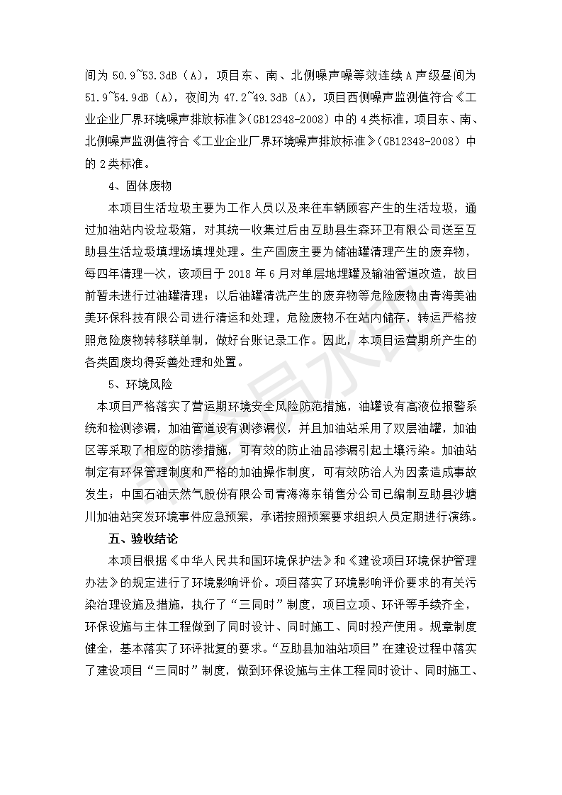 | 上一篇:互助縣東環(huán)路加油站改建項(xiàng)目竣工環(huán)境保護(hù)驗(yàn)收監(jiān)測報(bào)告表公示 | 下一篇:食品生產(chǎn)加工配送服務(wù)體系建設(shè)項(xiàng)目 竣工環(huán)境保護(hù)驗(yàn)收監(jiān)測報(bào)告表公示 |