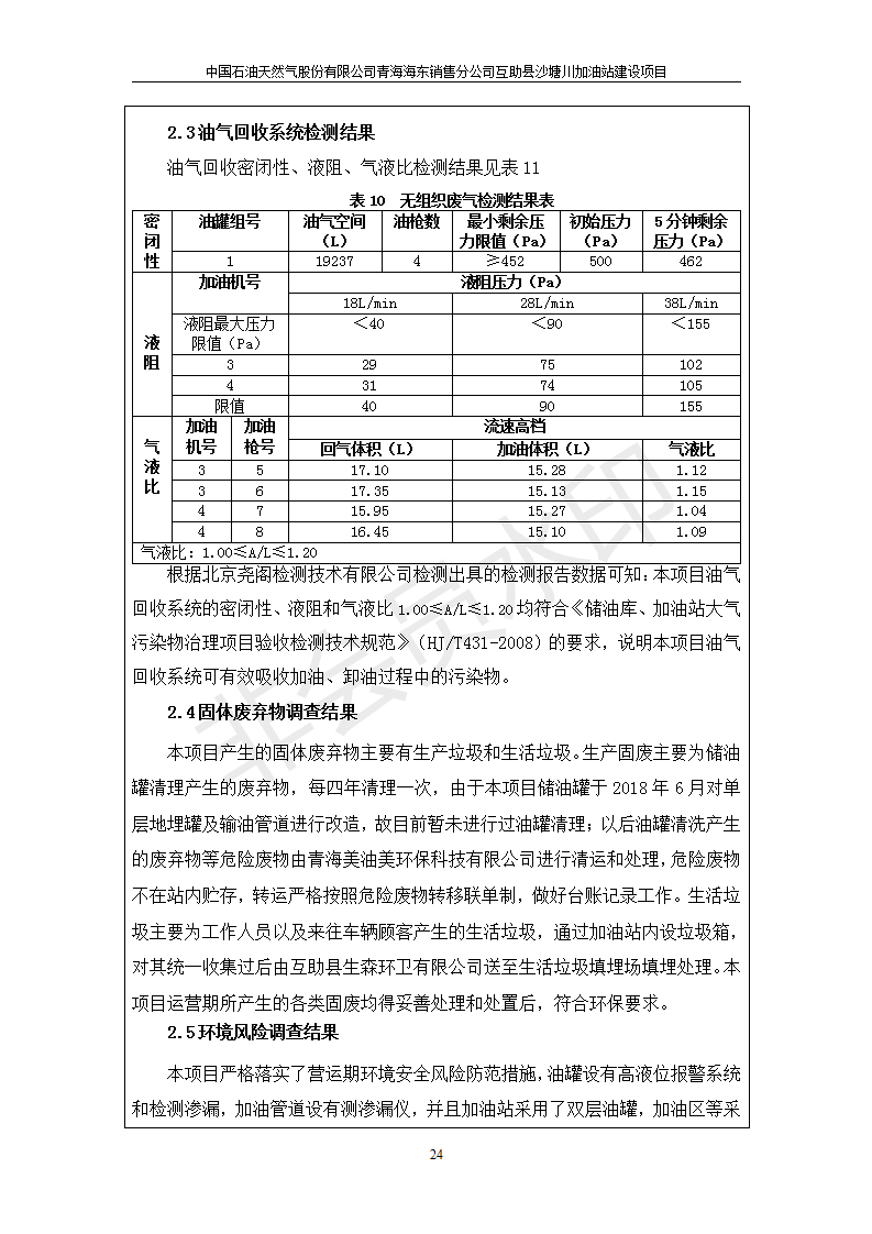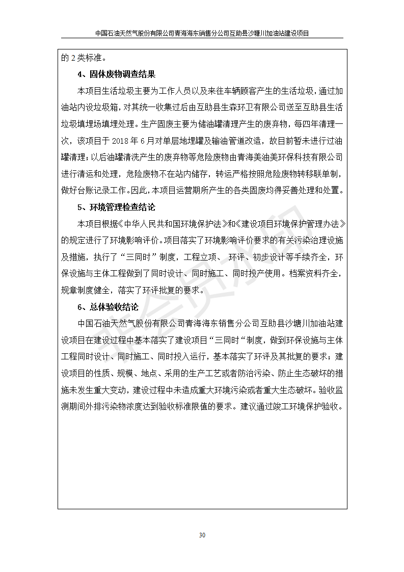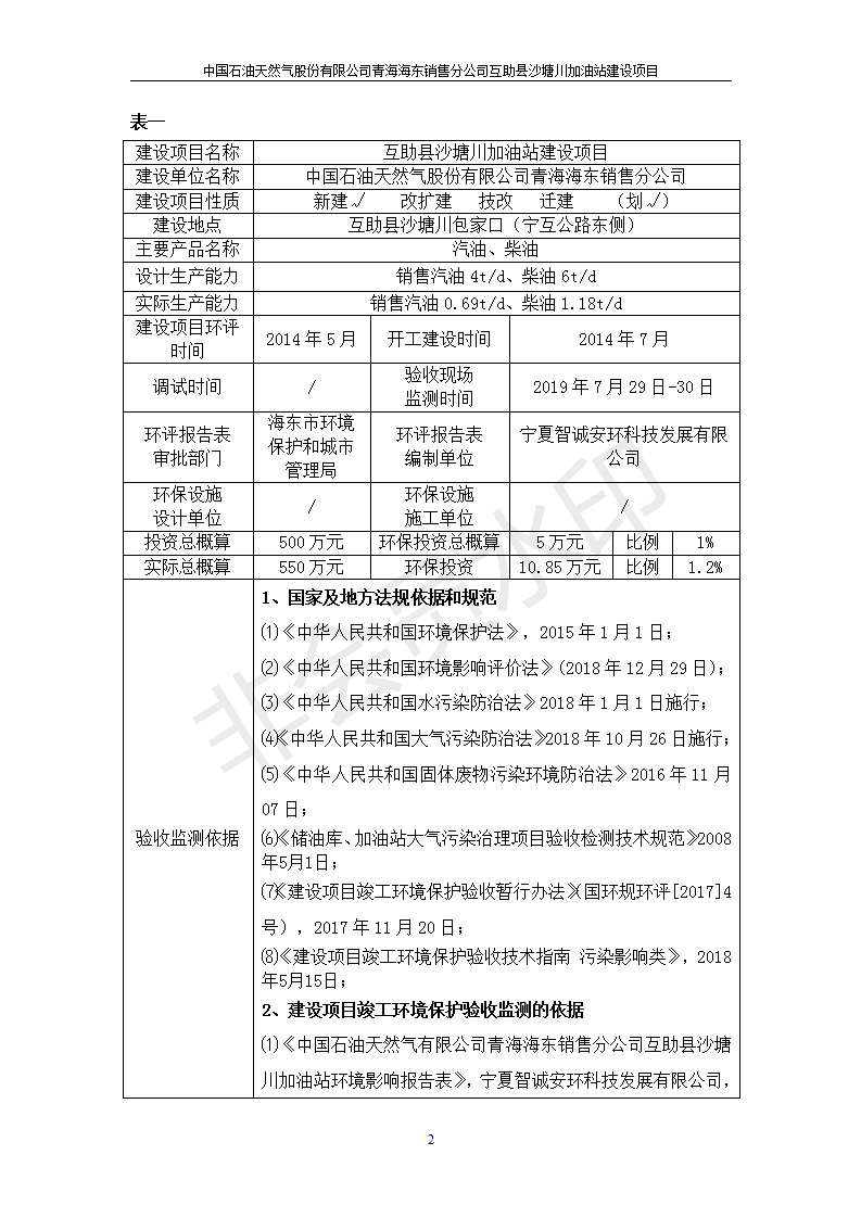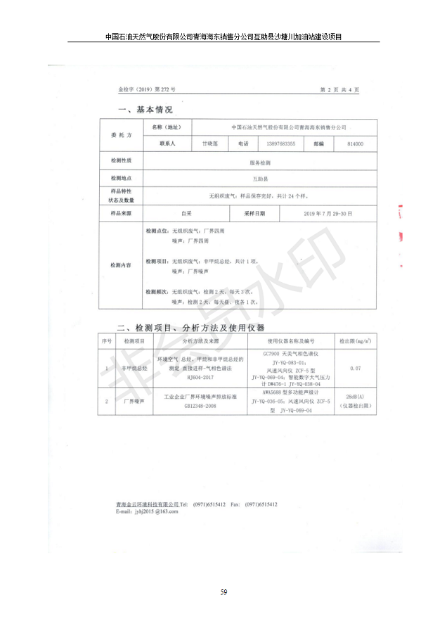 互助縣沙塘川加油站建設(shè)項(xiàng)目竣工環(huán)境保護(hù)驗(yàn)收監(jiān)測報(bào)告表發(fā)布日期:(2019-9-27) 點(diǎn)擊次數(shù):2188 |