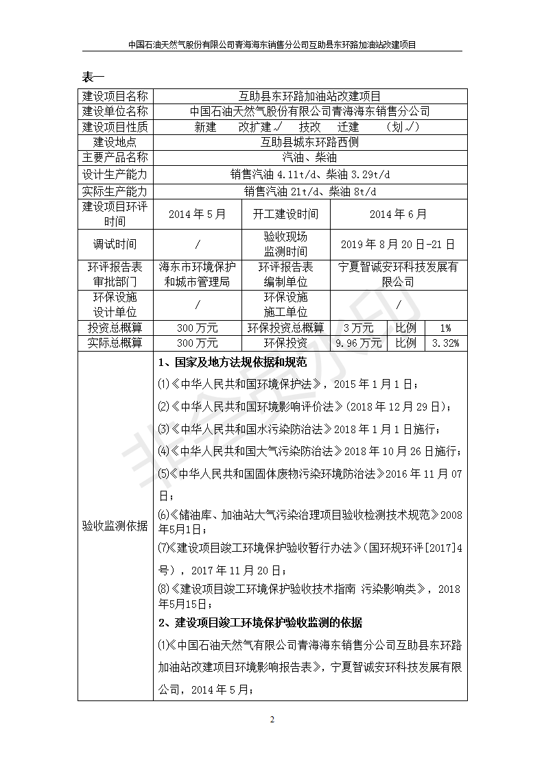 互助縣東環(huán)路加油站改建項目竣工環(huán)境保護驗收監(jiān)測報告表公示發(fā)布日期:(2019-9-27) 點擊次數(shù):2395 |