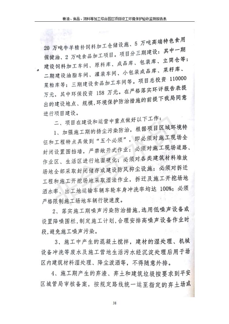 根據(jù)中華人民共和國國務(wù)院令第682號《國務(wù)院關(guān)于修改〈建設(shè)項(xiàng)目環(huán)境保護(hù)管理?xiàng)l例〉的決定》和《建設(shè)項(xiàng)目竣工環(huán)境保護(hù)驗(yàn)收暫行辦法》(國務(wù)院令682號),糧油、食品、飼料等加工綜合園區(qū)項(xiàng)目竣工環(huán)境保護(hù)驗(yàn)收監(jiān)測報告表(包括竣工環(huán)境保護(hù)驗(yàn)收監(jiān)測報告表和驗(yàn)收意見)公示如下。 一、項(xiàng)目名稱:糧油、食品、飼料等加工綜合園區(qū)項(xiàng)目 二、地點(diǎn):河湟新區(qū)(海東工業(yè)園區(qū)臨空綜合經(jīng)濟(jì)園) 六、聯(lián)系電話:0971-6515411 七、公示時間:二〇一九年十月九日至二〇一九年十一月五日 公示期間,對上述公示內(nèi)容如有異議,請以書面形式反饋,個人須署真實(shí)姓名,單位須加蓋公章。