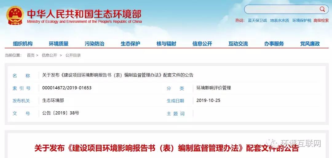 環(huán)境部發(fā)布《建設(shè)項目環(huán)境影響報告書(表)編制監(jiān)督管理辦法》配套文件發(fā)布日期:(2019-10-28) 點擊次數(shù):2451 |