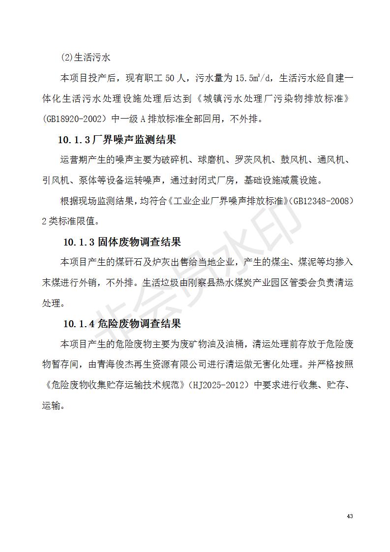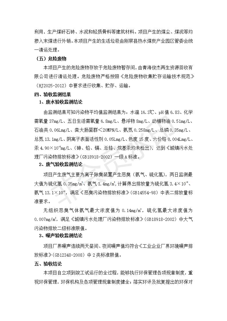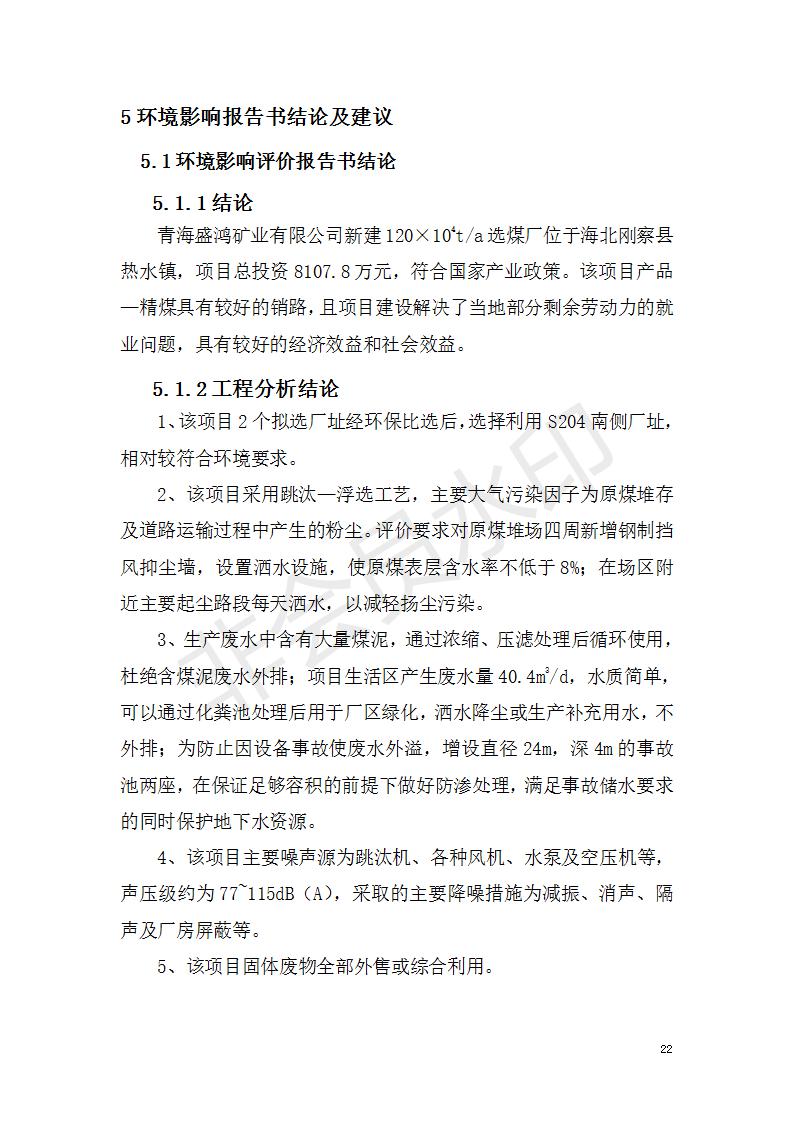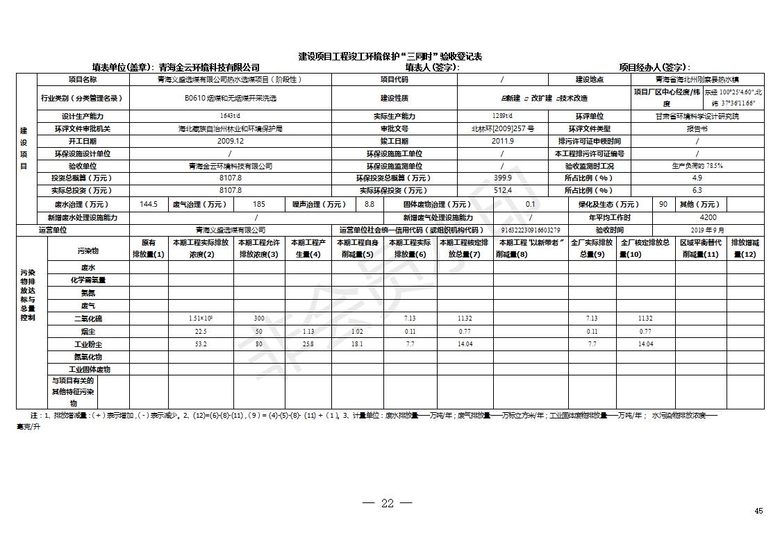 根據(jù)中華人民共和國(guó)國(guó)務(wù)院令第682號(hào)《國(guó)務(wù)院關(guān)于修改〈建設(shè)項(xiàng)目環(huán)境保護(hù)管理?xiàng)l例〉的決定》和《建設(shè)項(xiàng)目竣工環(huán)境保護(hù)驗(yàn)收暫行辦法》(國(guó)務(wù)院令682號(hào)),青海義盛選煤有限公司熱水選煤項(xiàng)目(階段性)竣工環(huán)境保護(hù)驗(yàn)收監(jiān)測(cè)報(bào)告(包括竣工環(huán)境保護(hù)驗(yàn)收監(jiān)測(cè)報(bào)告和驗(yàn)收意見(jiàn))公示如下。 一、項(xiàng)目名稱(chēng):青海義盛選煤有限公司熱水選煤項(xiàng)目(階段性) 二、地點(diǎn):剛察縣熱水鎮(zhèn) 此外還包括公用工程系統(tǒng)、消防系統(tǒng)及輔助生產(chǎn)設(shè)施等。 五、聯(lián)系人:張工六、聯(lián)系電話:0971-6515411 七、公示時(shí)間:二〇一九年十一月十二日至二〇一九年十二月九日