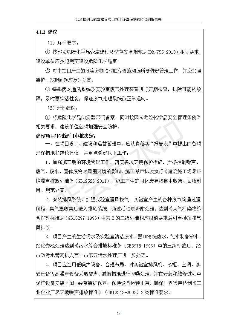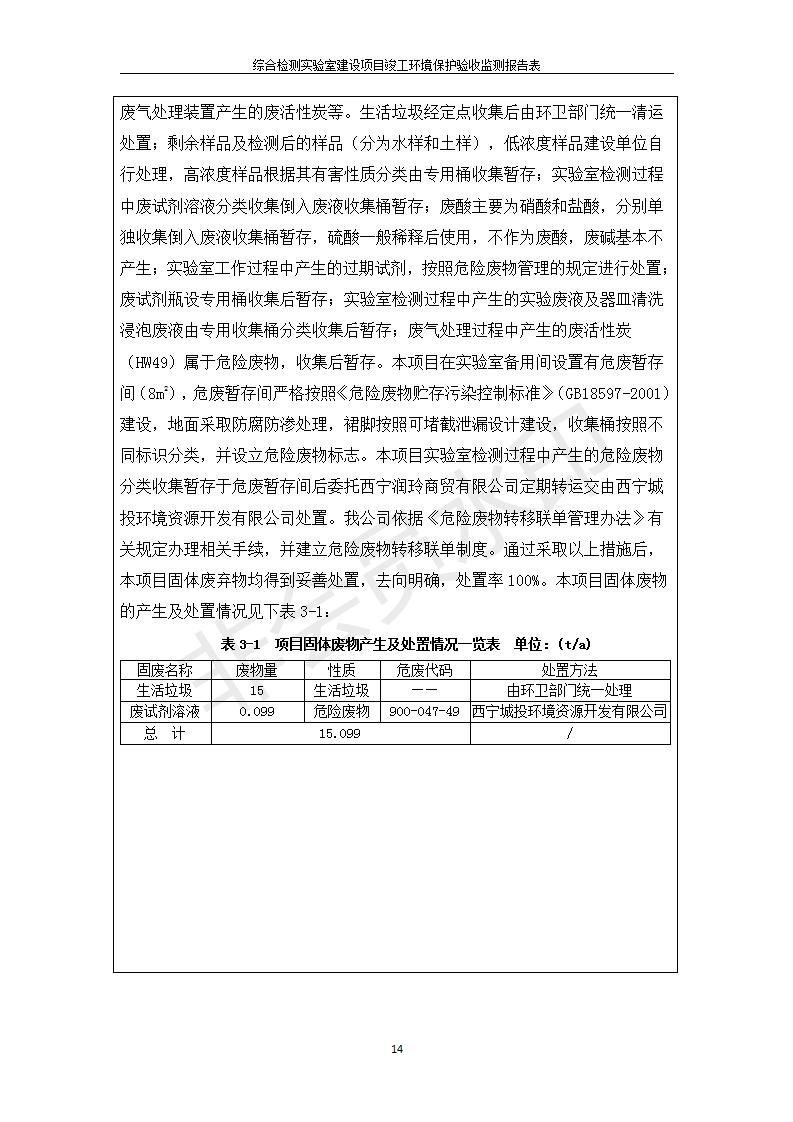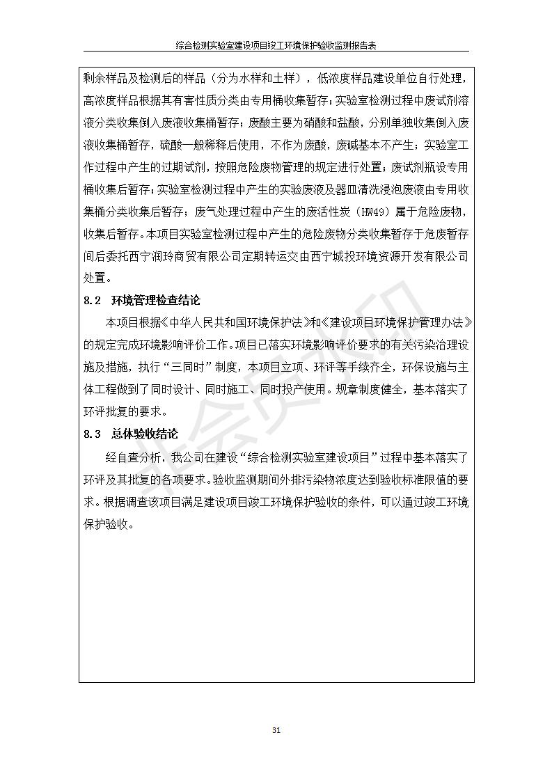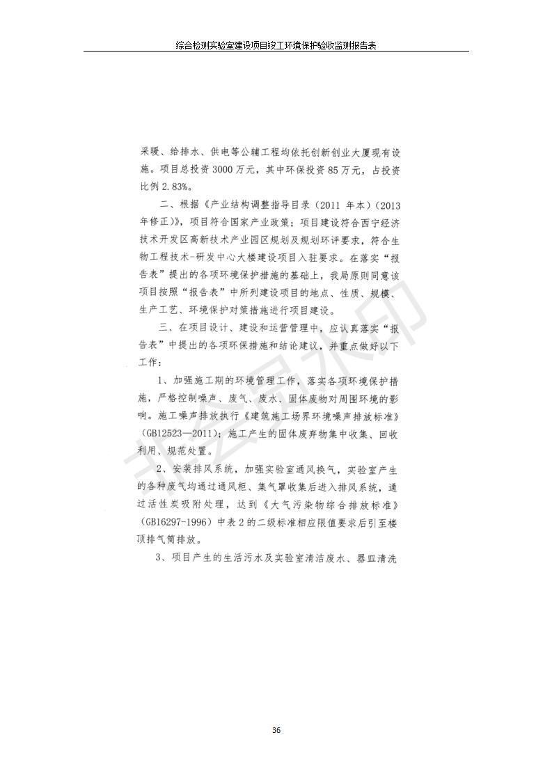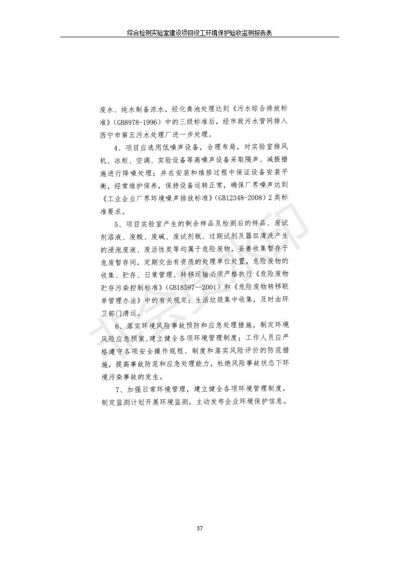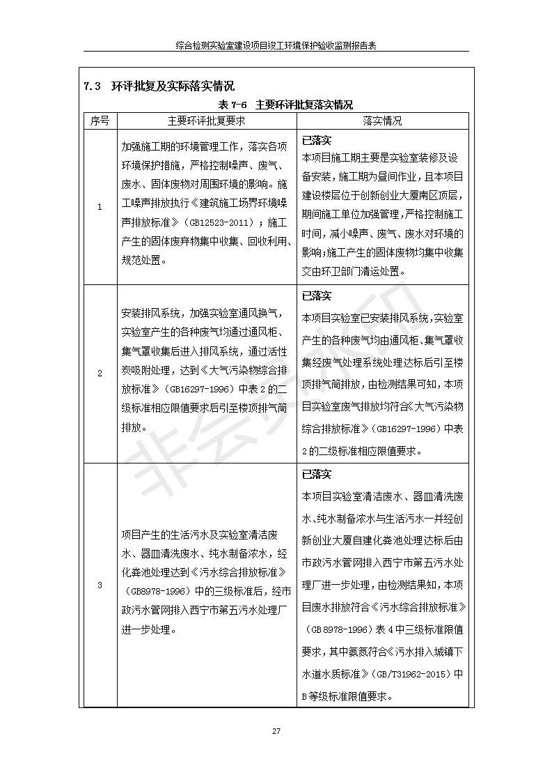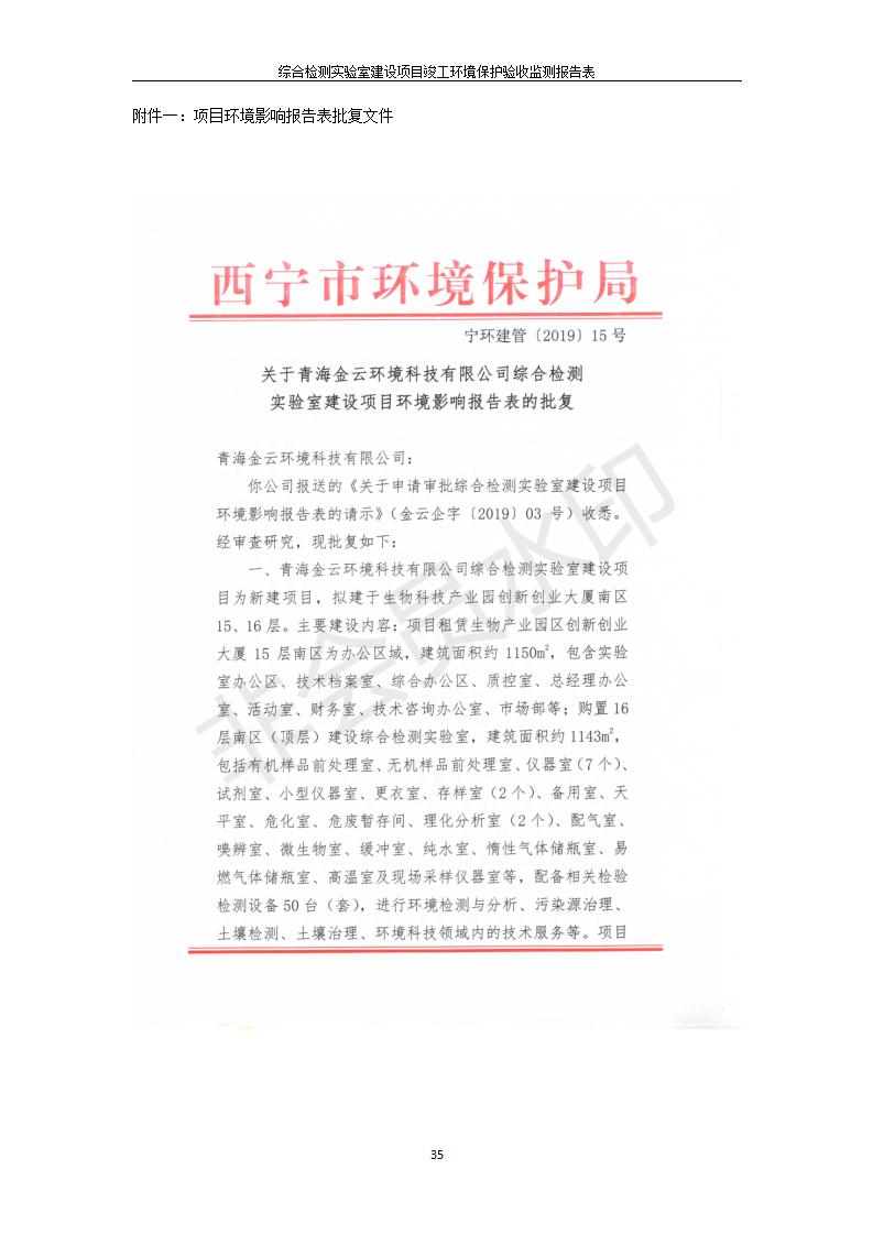 根據(jù)中華人民共和國國務(wù)院令第682號《國務(wù)院關(guān)于修改〈建設(shè)項(xiàng)目環(huán)境保護(hù)管理?xiàng)l例〉的決定》和《建設(shè)項(xiàng)目竣工環(huán)境保護(hù)驗(yàn)收暫行辦法》(國務(wù)院令682號),綜合檢測實(shí)驗(yàn)室建設(shè)項(xiàng)目(包括竣工環(huán)境保護(hù)驗(yàn)收監(jiān)測報(bào)告表和驗(yàn)收意見)公示如下。 一、項(xiàng)目名稱:綜合檢測實(shí)驗(yàn)室建設(shè)項(xiàng)目 二、地點(diǎn):西寧市經(jīng)濟(jì)技術(shù)開發(fā)區(qū)生物科技產(chǎn)業(yè)園區(qū)創(chuàng)新創(chuàng)業(yè)大廈南區(qū)15、16層 六、聯(lián)系電話:0971-6515411 七、公示時(shí)間:二〇一九年十一月十九日至二〇一九年十二月十六日 公示期間,對上述公示內(nèi)容如有異議,請以書面形式反饋,個(gè)人須署真實(shí)姓名,單位須加蓋公章。