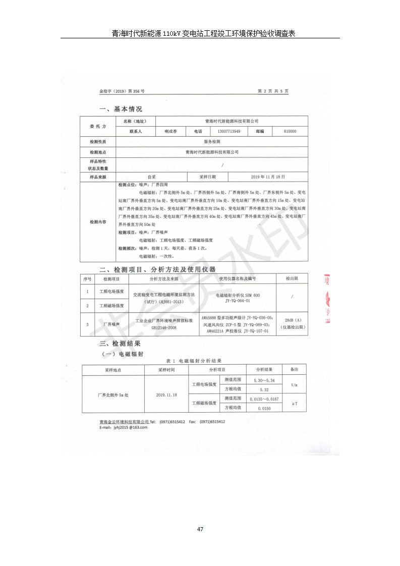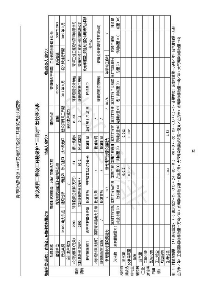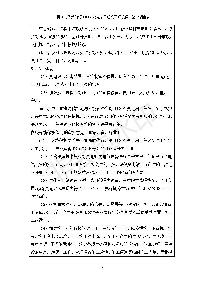 青海時(shí)代新能源110kV變電站工程竣工環(huán)境保護(hù)驗(yàn)收調(diào)查表公示發(fā)布日期:(2020-1-14) 點(diǎn)擊次數(shù):2733 |