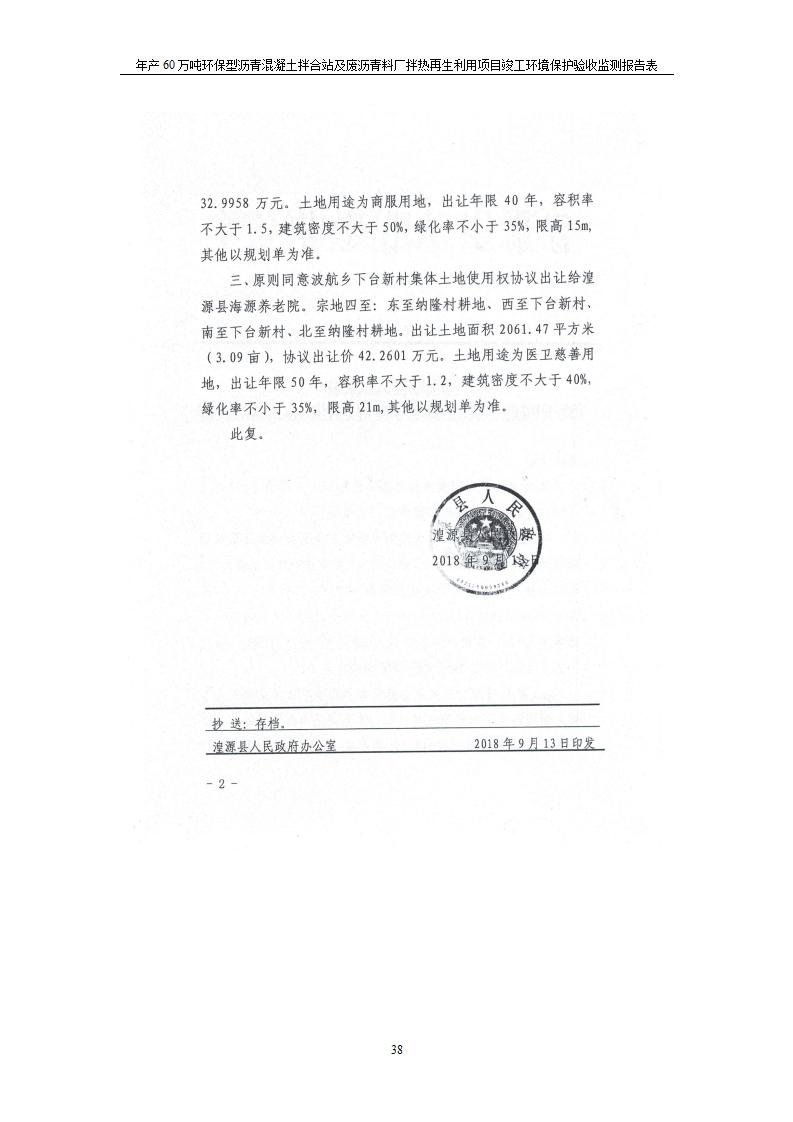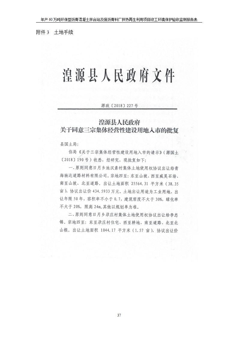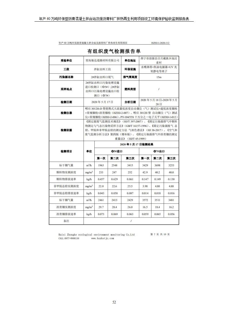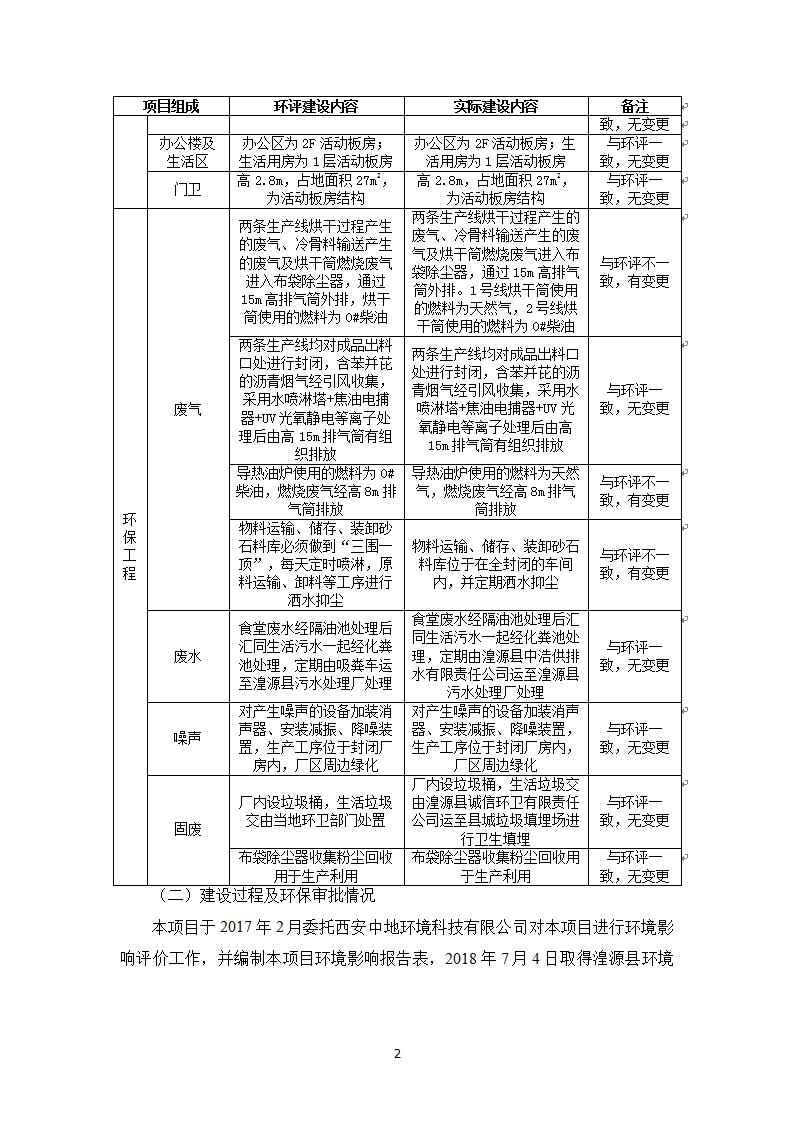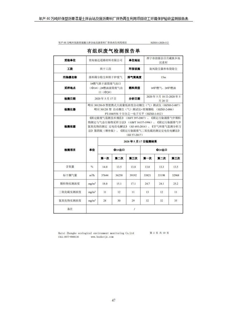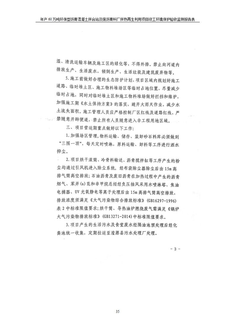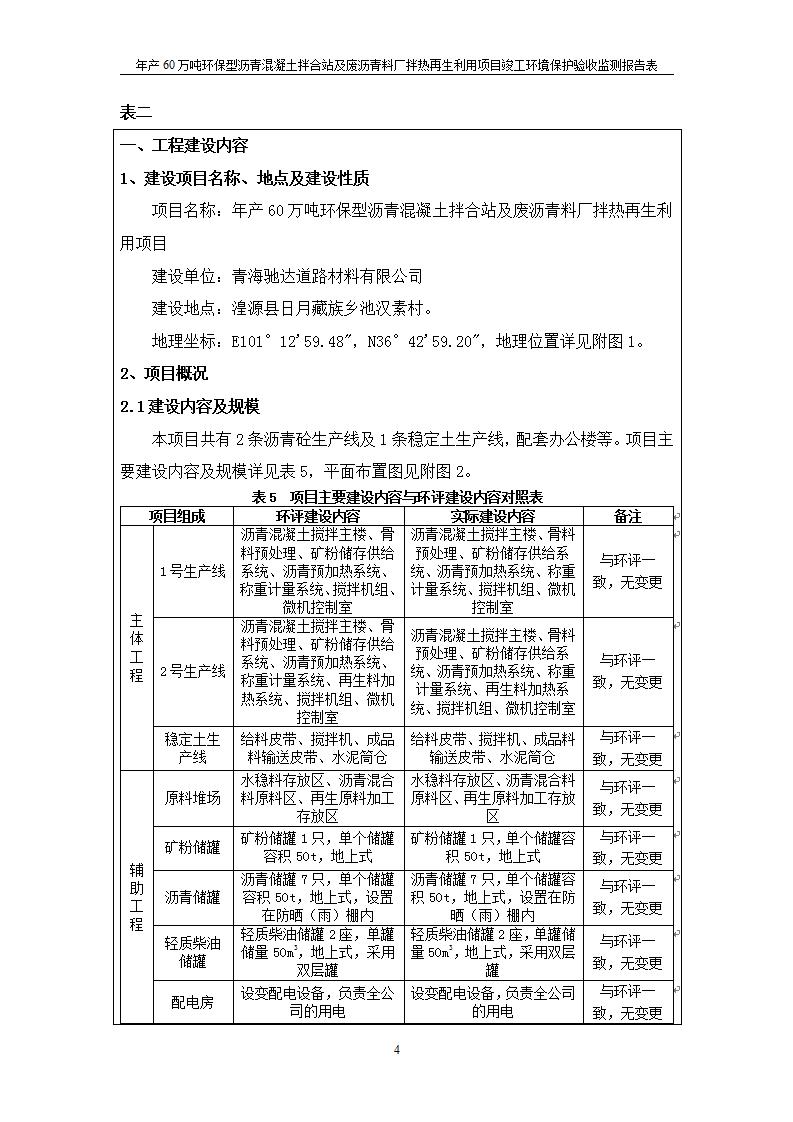 根據(jù)中華人民共和國國務(wù)院令第682號《國務(wù)院關(guān)于修改〈建設(shè)項目環(huán)境保護(hù)管理條例〉的決定》和《建設(shè)項目竣工環(huán)境保護(hù)驗收暫行辦法》(國務(wù)院令682號),青海馳達(dá)道路材料有限公司年產(chǎn)60萬噸環(huán)保型瀝青混凝土拌合站及廢瀝青料廠拌熱再生利用項目竣工環(huán)境保護(hù)驗收監(jiān)測報告表公示如下。 一、項目名稱:年產(chǎn)60萬噸環(huán)保型瀝青混凝土拌合站及廢瀝青料廠拌熱再生利用項目竣工環(huán)境保護(hù)驗收監(jiān)測報告表 二、地點(diǎn):湟源縣日月藏族鄉(xiāng)池漢素村 三、建設(shè)單位:青海馳達(dá)道路材料有限公司 四、建設(shè)內(nèi)容:本項目共有2條瀝青砼生產(chǎn)線及1條穩(wěn)定土生產(chǎn)線,配套辦公樓等。 五、聯(lián)系人:楊工 六、聯(lián)系電 話:0971-6515411 七、公示時間:二〇二〇年七月六日至二〇二〇年七月三十一日 公示期間,對上述公示內(nèi)容如有異議,請以書面形式反饋,個人須署真實姓名,單位須加蓋公章。