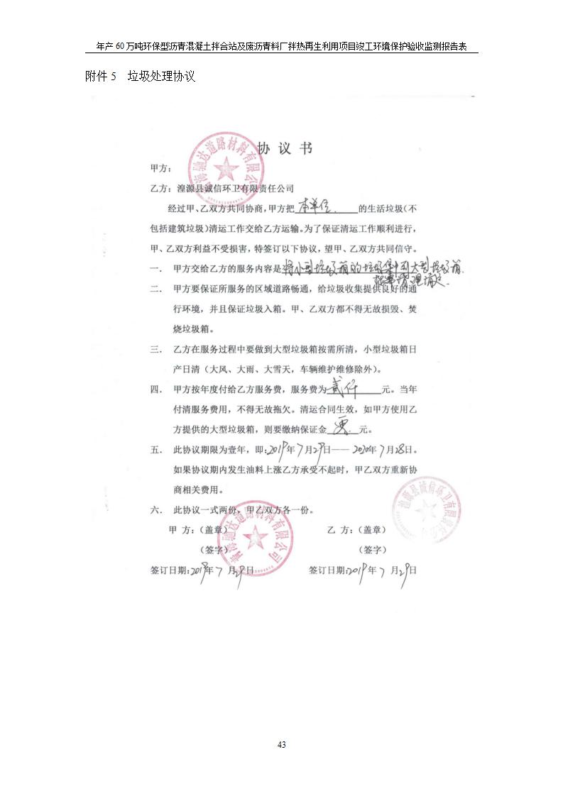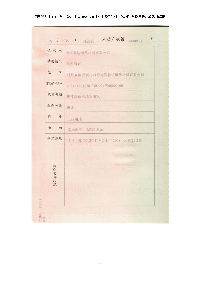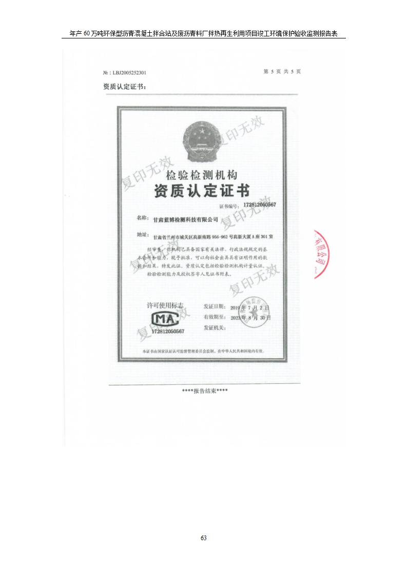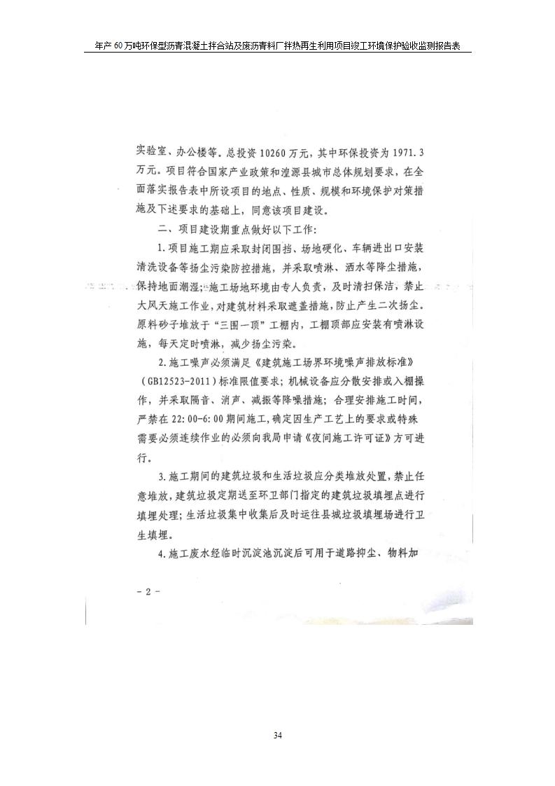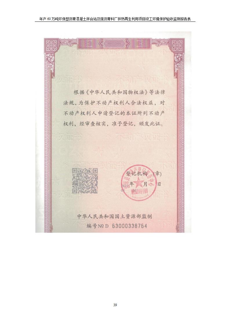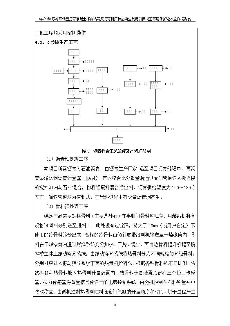 根據(jù)中華人民共和國國務(wù)院令第682號《國務(wù)院關(guān)于修改〈建設(shè)項目環(huán)境保護(hù)管理條例〉的決定》和《建設(shè)項目竣工環(huán)境保護(hù)驗收暫行辦法》(國務(wù)院令682號),青海馳達(dá)道路材料有限公司年產(chǎn)60萬噸環(huán)保型瀝青混凝土拌合站及廢瀝青料廠拌熱再生利用項目竣工環(huán)境保護(hù)驗收監(jiān)測報告表公示如下。 一、項目名稱:年產(chǎn)60萬噸環(huán)保型瀝青混凝土拌合站及廢瀝青料廠拌熱再生利用項目竣工環(huán)境保護(hù)驗收監(jiān)測報告表 二、地點(diǎn):湟源縣日月藏族鄉(xiāng)池漢素村 三、建設(shè)單位:青海馳達(dá)道路材料有限公司 四、建設(shè)內(nèi)容:本項目共有2條瀝青砼生產(chǎn)線及1條穩(wěn)定土生產(chǎn)線,配套辦公樓等。 五、聯(lián)系人:楊工 六、聯(lián)系電 話:0971-6515411 七、公示時間:二〇二〇年七月六日至二〇二〇年七月三十一日 公示期間,對上述公示內(nèi)容如有異議,請以書面形式反饋,個人須署真實姓名,單位須加蓋公章。