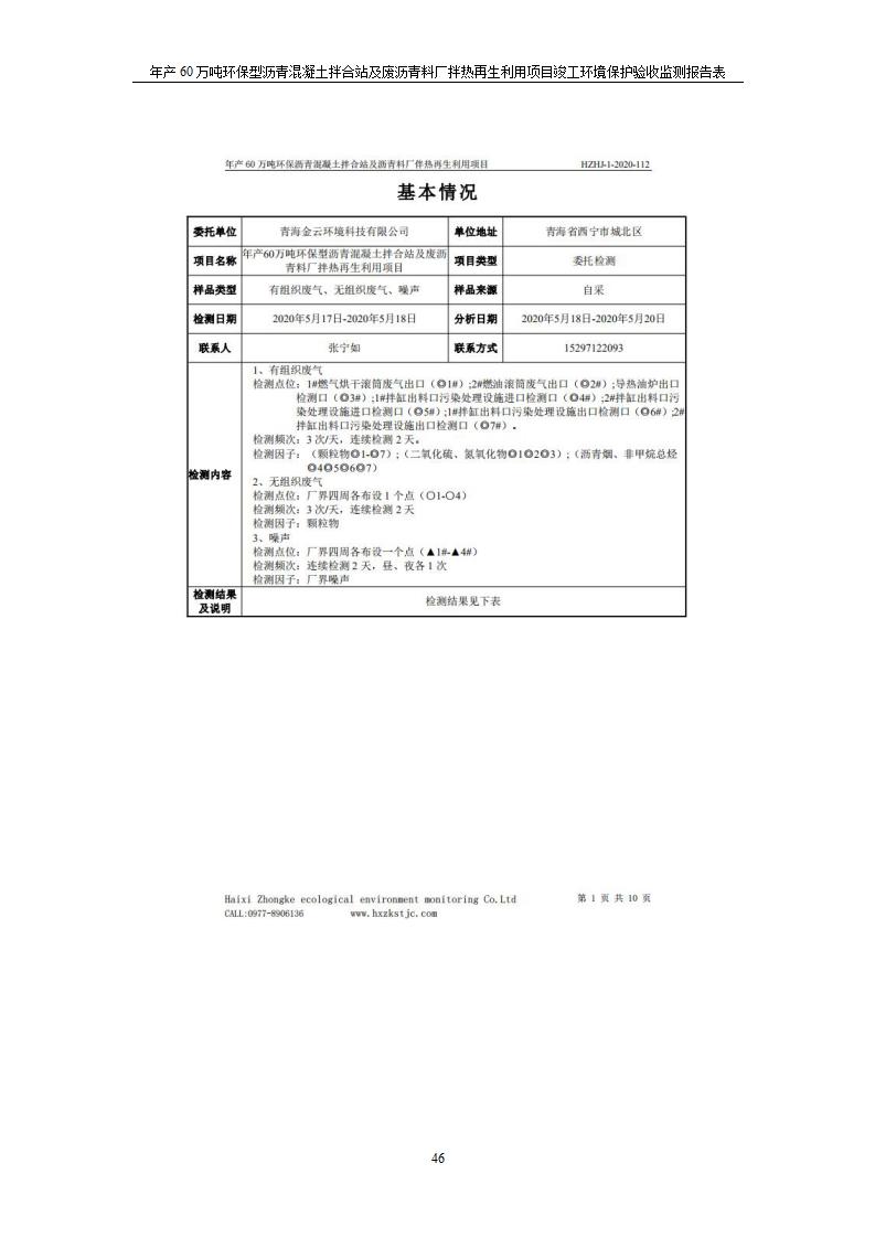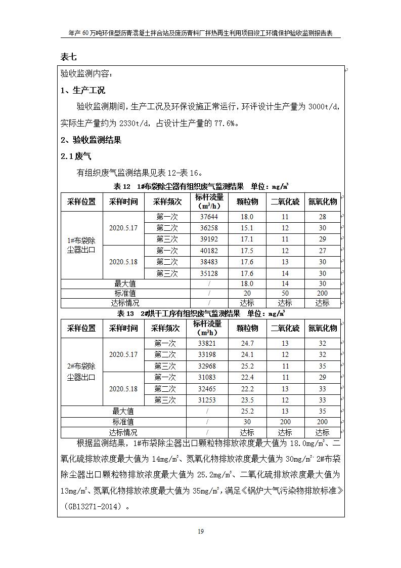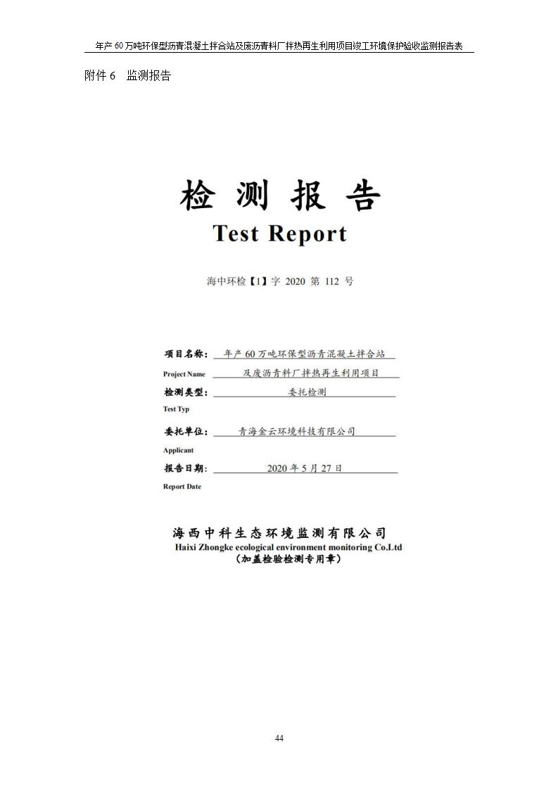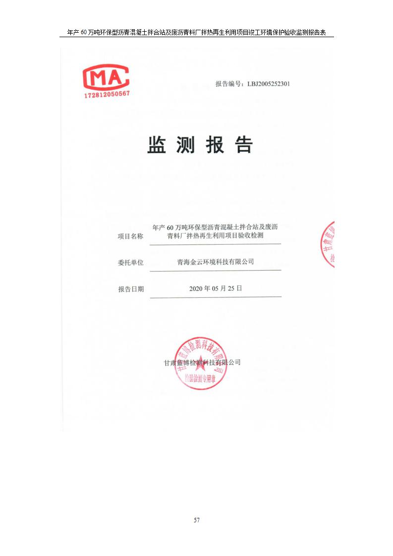年產(chǎn)60萬噸環(huán)保型瀝青混凝土拌合站及廢瀝青料廠拌熱再生利用項目竣工環(huán)境保護(hù)驗收監(jiān)測報告表公示發(fā)布日期:(2020-7-6) 點(diǎn)擊次數(shù):3893 |