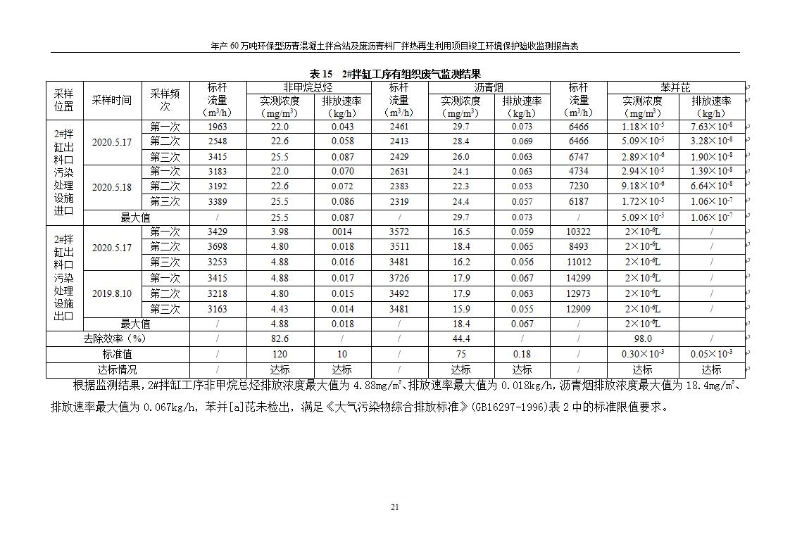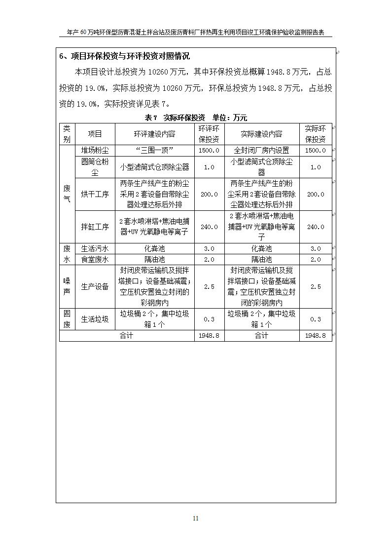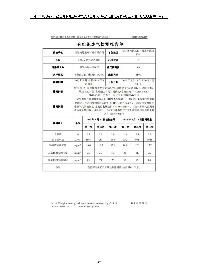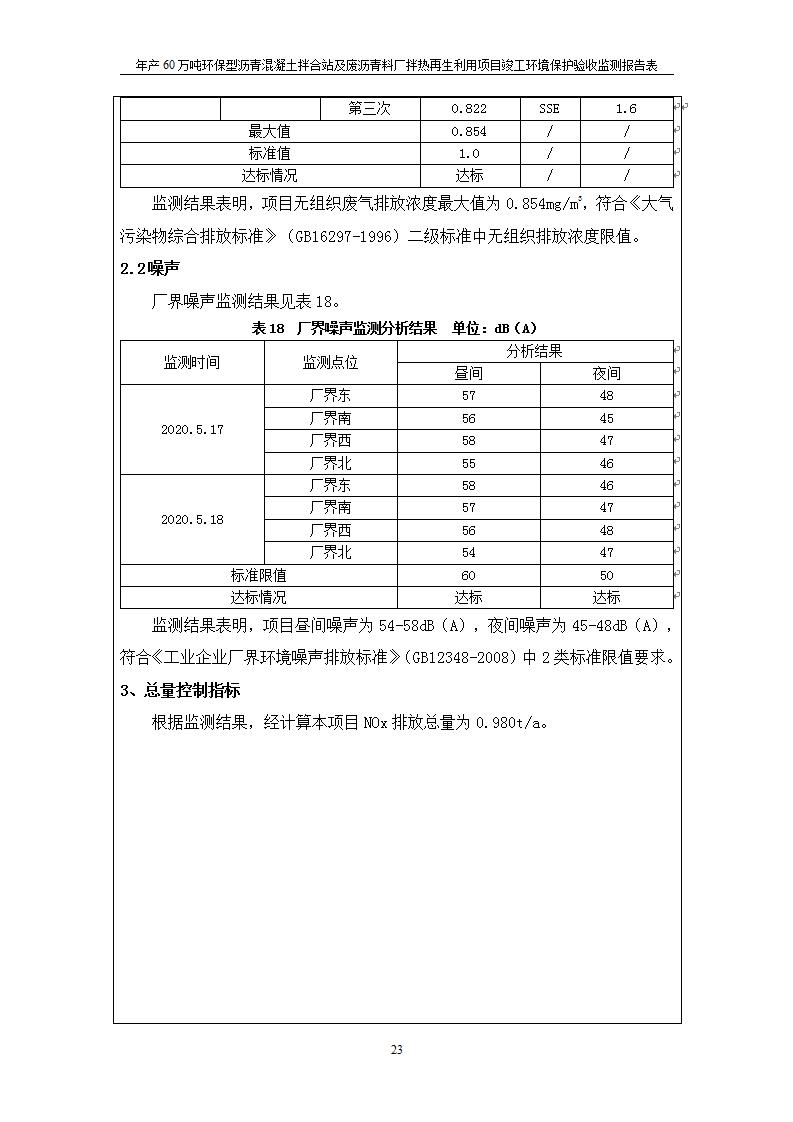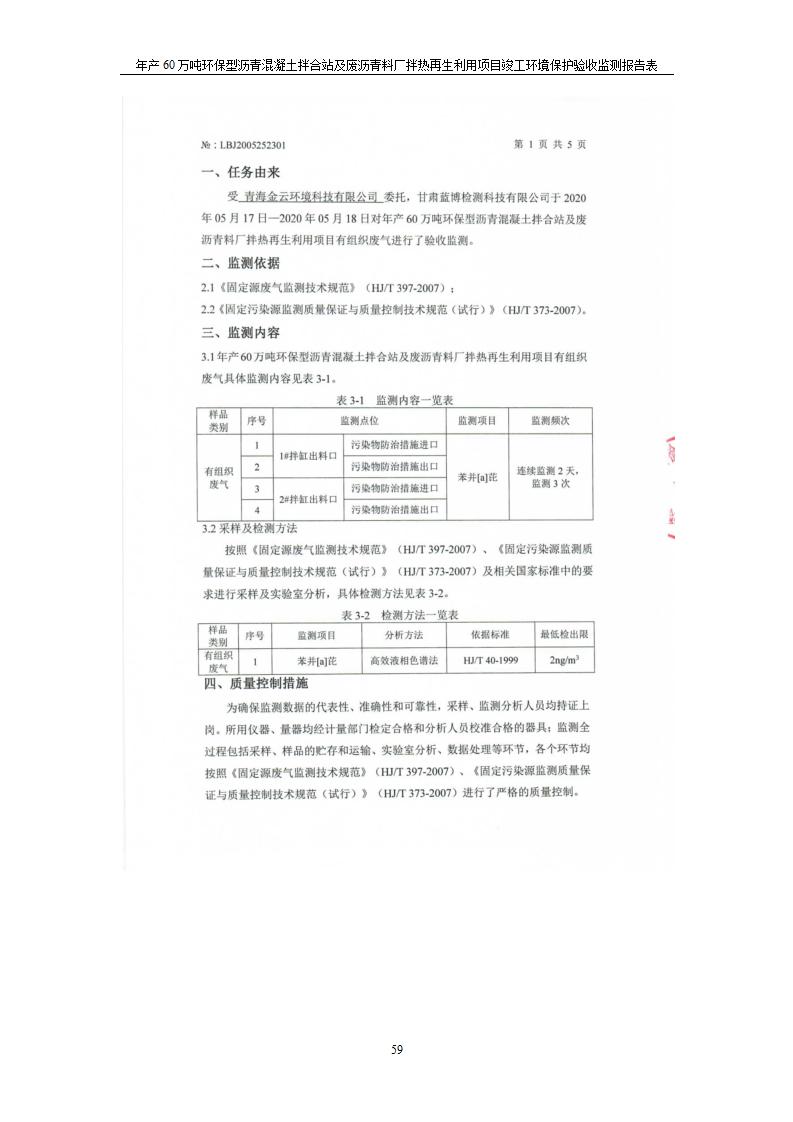 年產(chǎn)60萬噸環(huán)保型瀝青混凝土拌合站及廢瀝青料廠拌熱再生利用項目竣工環(huán)境保護(hù)驗收監(jiān)測報告表公示發(fā)布日期:(2020-7-6) 點(diǎn)擊次數(shù):3893 |